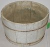 OLD BUCKET PAINT OVER EARLIER GREEN - SLATTTED W/ 2 METAL WIRE BANDS - PLANTER BUCKET W/ HOLES IN THE BOTTOM - 23 3/4" D X 7 1/2" T - WEAR