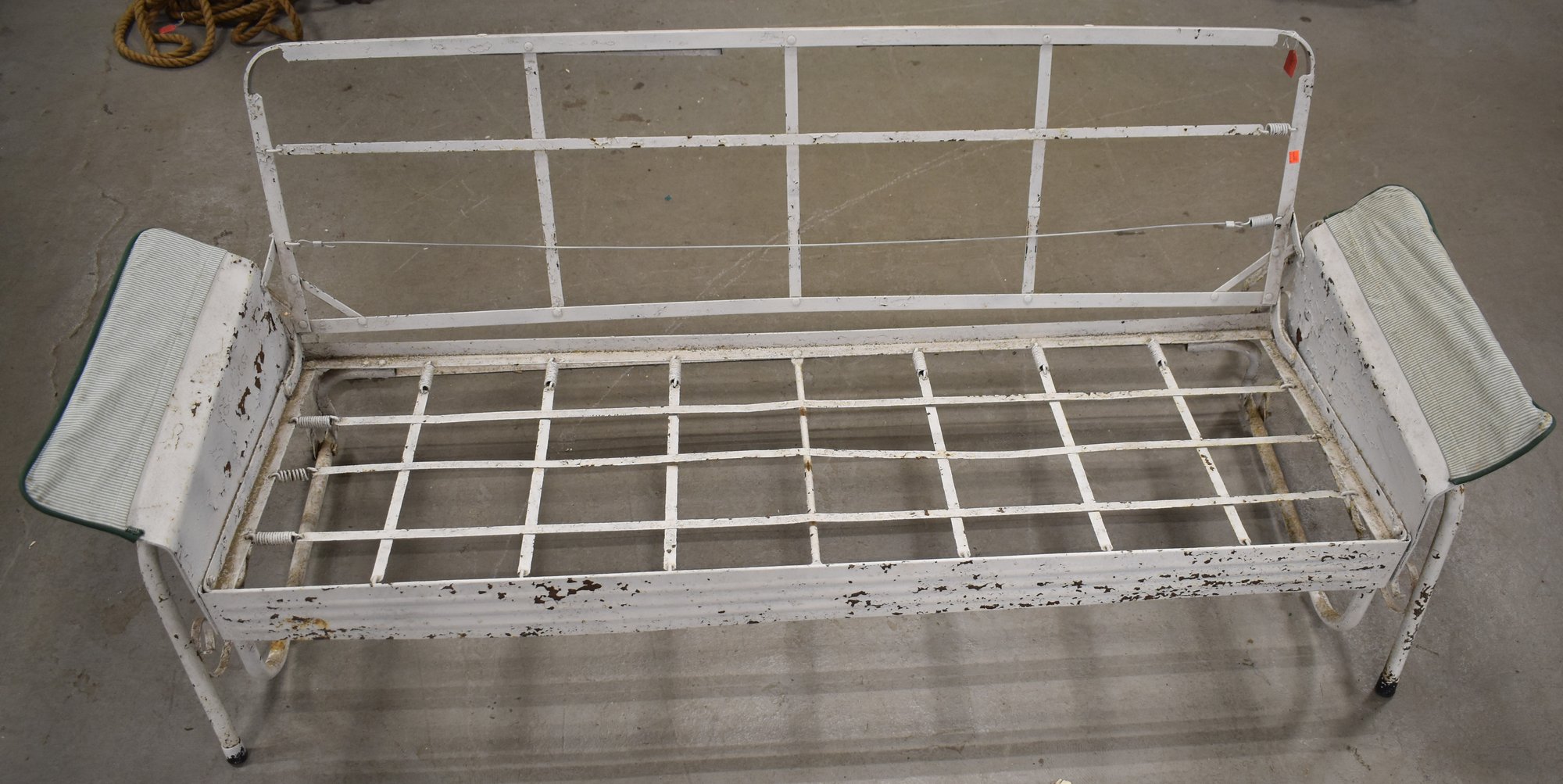 WHITE METAL PORCH GLIDER - NO CUSHIONS - 77" L X 34" D X 27 1/2" T - OXIDATION & WEAR