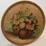 20TH CENT ROUND PAINTING ON ATRIST PANEL OF STILL LIFE OF FLOWERS - SIGNED - UNCLEAR - 27" DIA - WEAR, LOSSES TO FRAME & IMPERFECTIONS