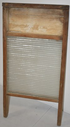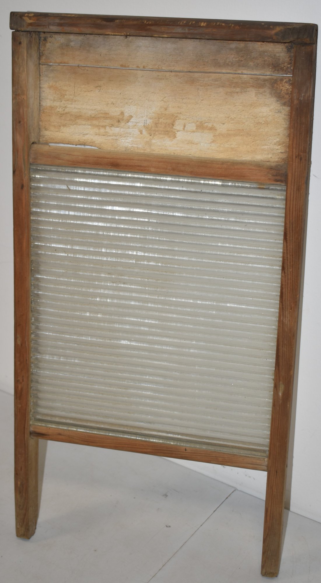 WOODEN FRAME W/ RIBBED GLASS INSERT - STENCILING UNCLEAR - WORN - 24 1/2" L - WEAR & IMPERFECTIONS