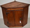 PINE 1 DOOR HANGING CORNER SPOOL SEWING CABINET W/ 3 TIER SPOOL HOLDER INTERIOR - 19" T X 22 1/2" W X 17" D - WEAR & IMPERFECTIONS