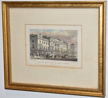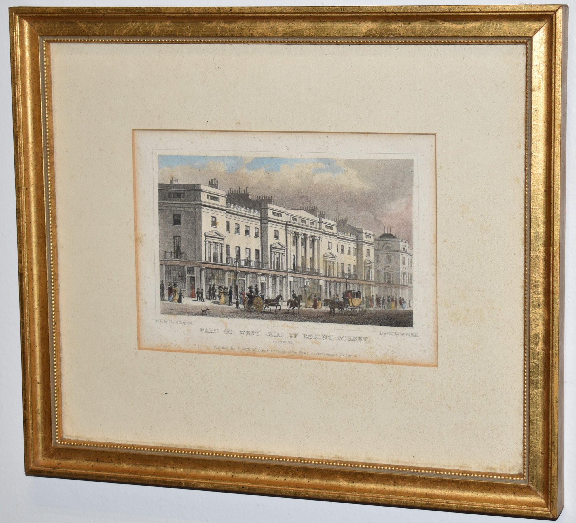 DRAWN BY THO. H. SHEPARD PART OF WEST SIDE OF REGENT STREET - 1828 LONDON - 4 3/4" X 6 1/2" - MATTED & FRAMED - TONING & IMPERFECTIONS