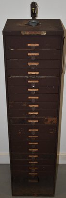 VITNAGE METAL 18 DRAWER ELEXO CRYSTALS CABINET - 51 1/2" T X 12 1/4" W X 10 1/2" D - WEAR, FLAKING TO PAINT & IMPERFECTIONS