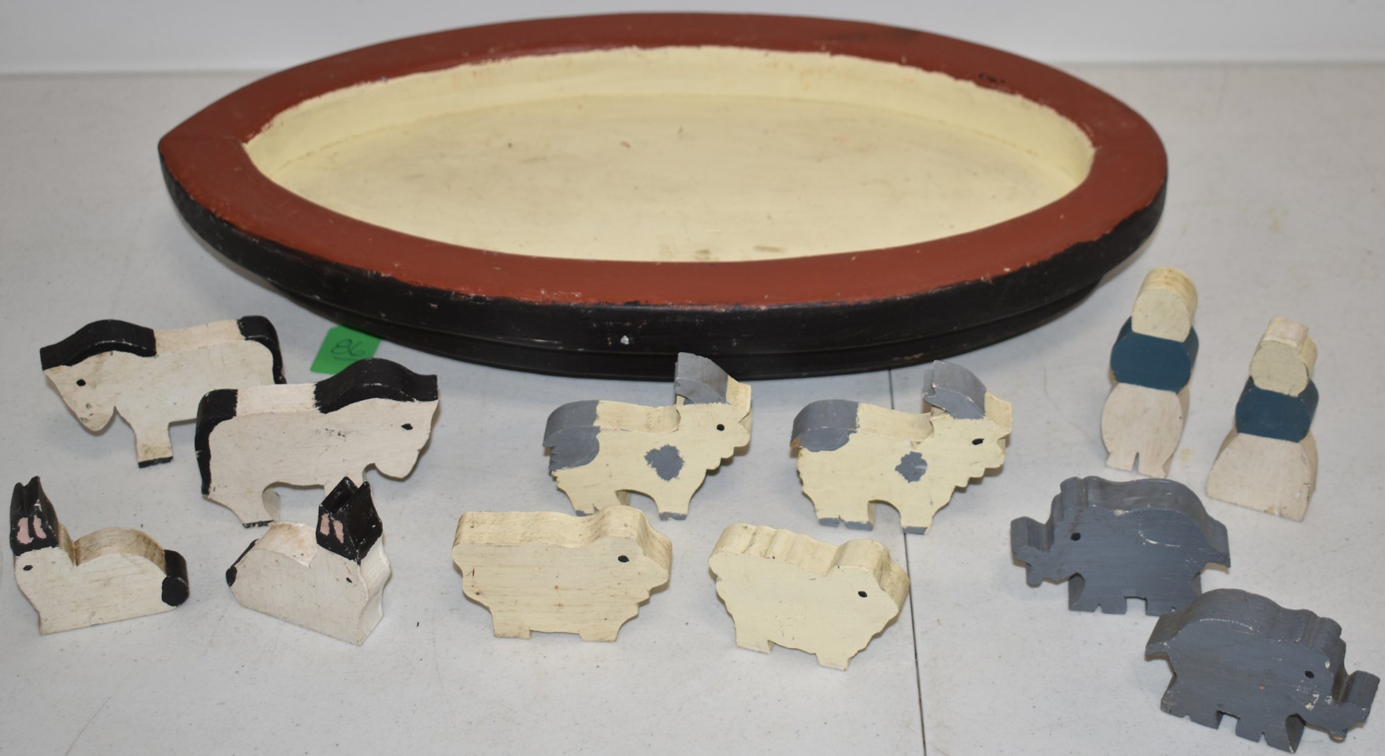 W/ 5 SETS OF ANIMALS & 2 PEOPLE - ARK 20" L X 10 1/2" - WEAR & IMPERFECTIONS