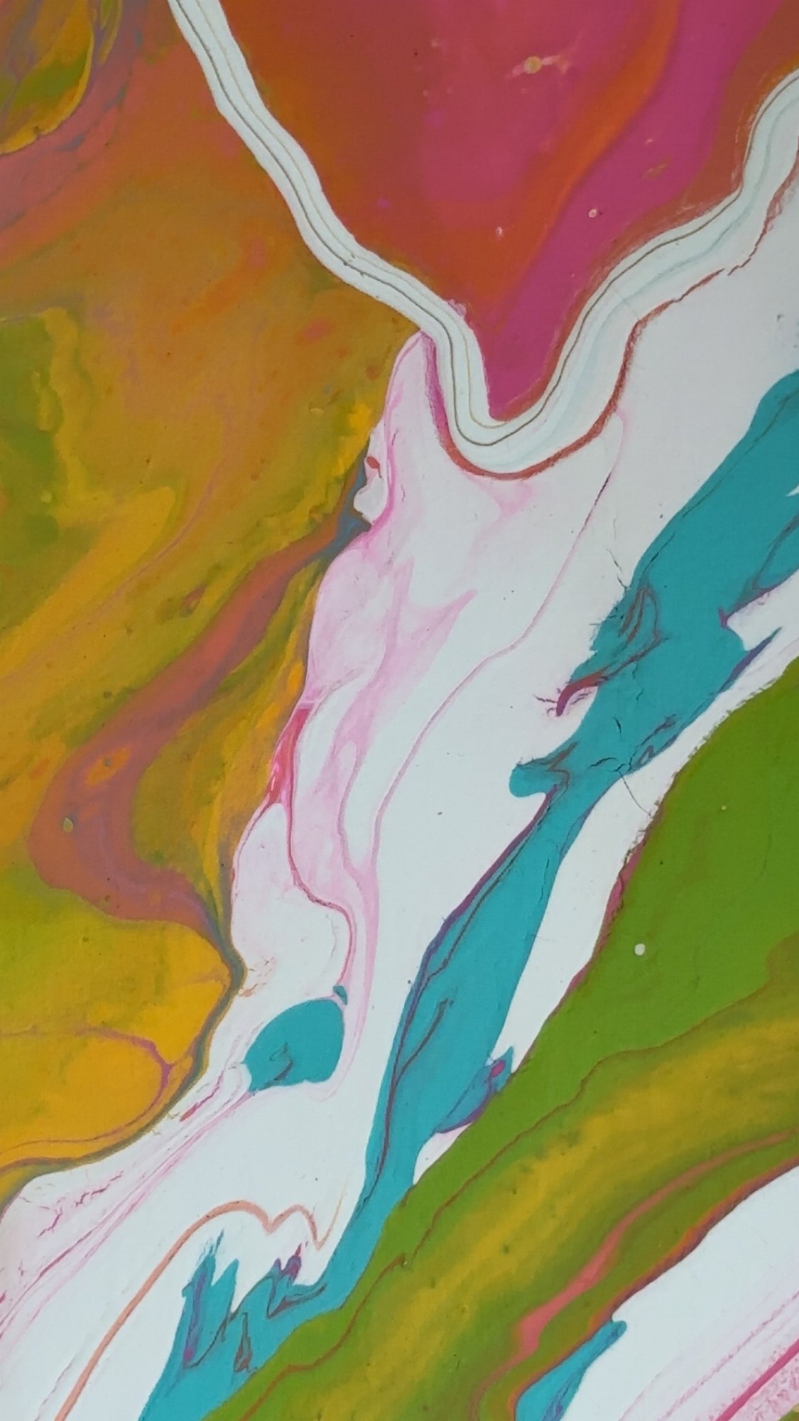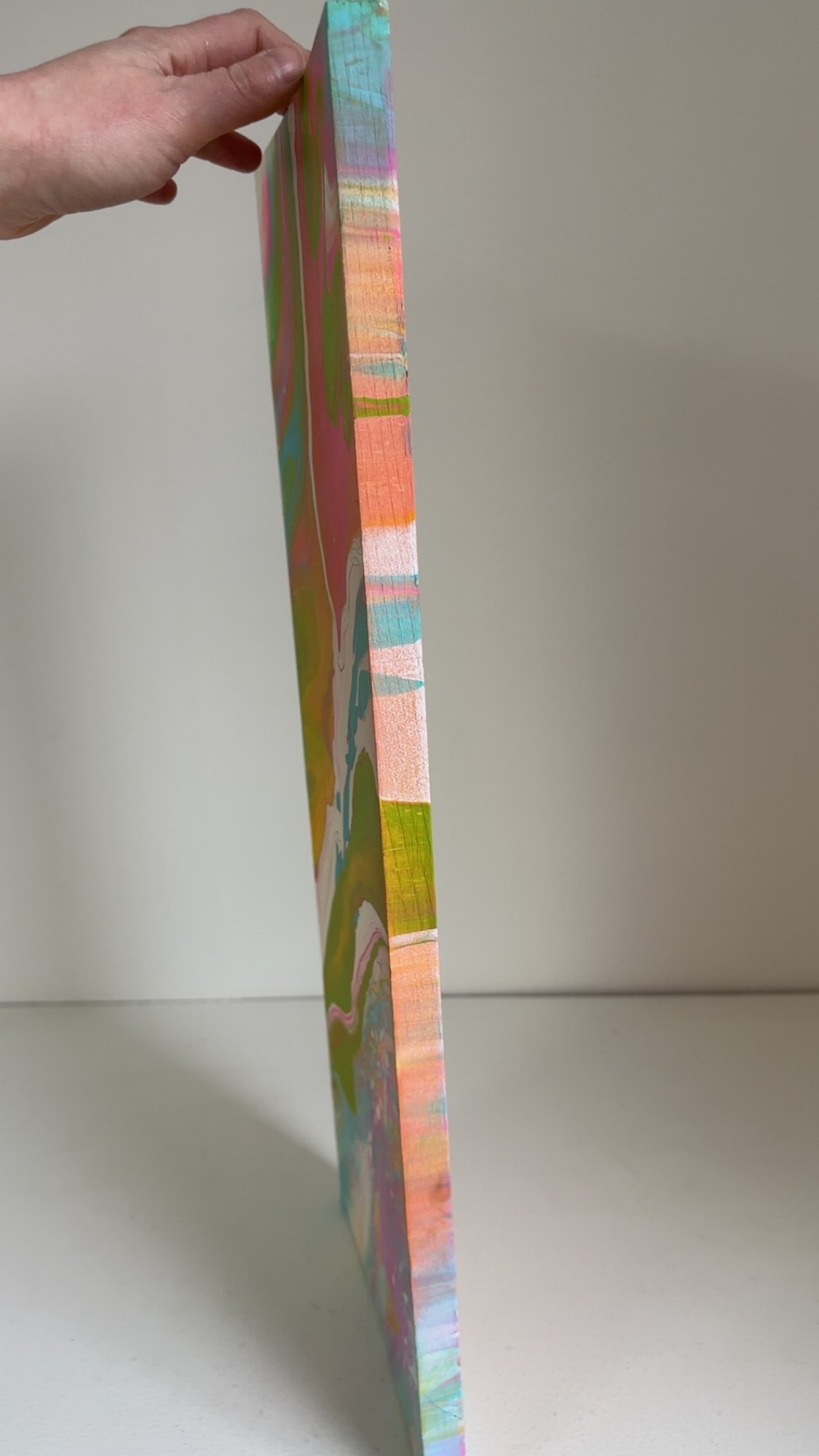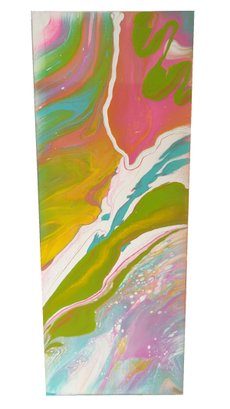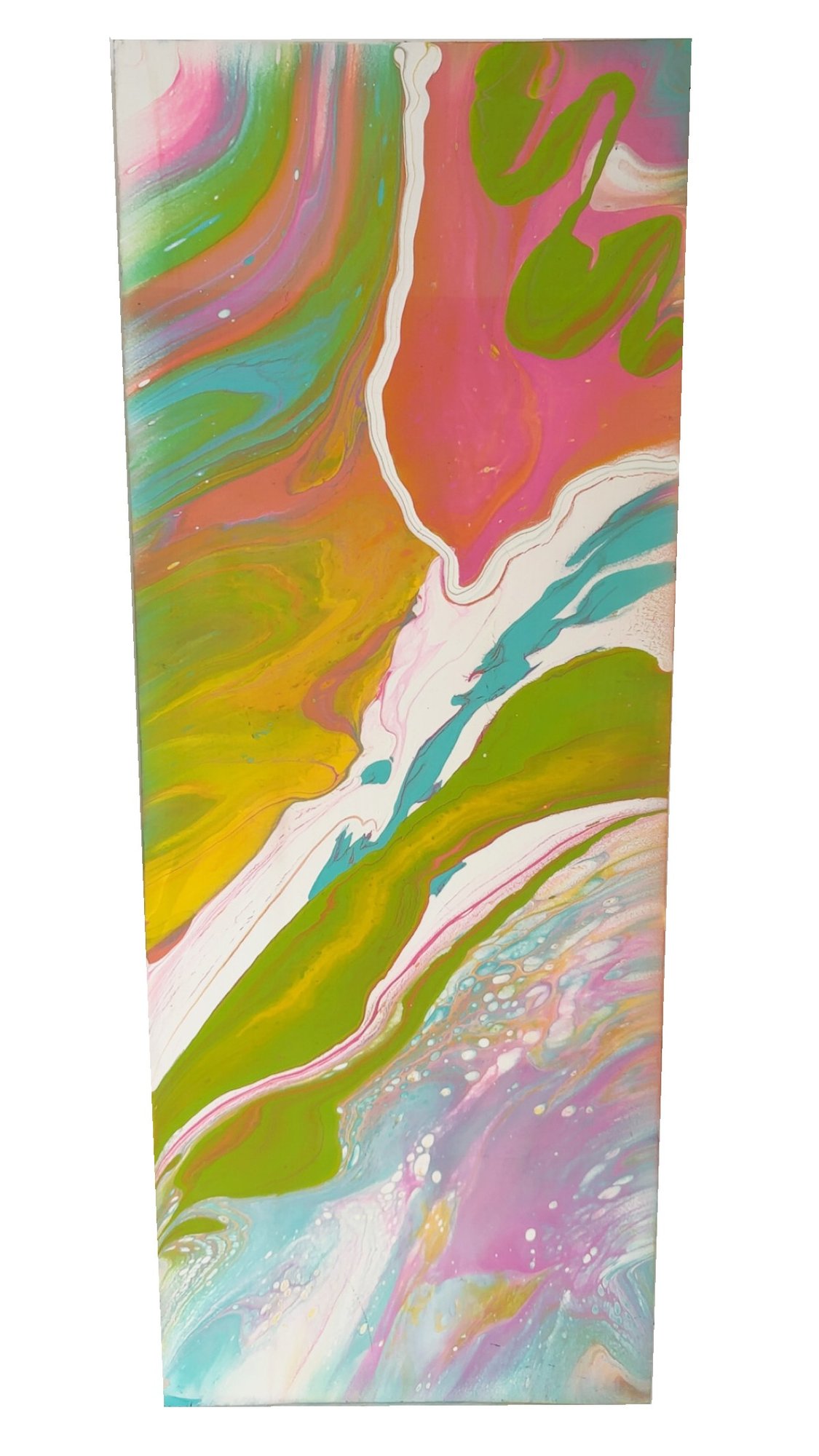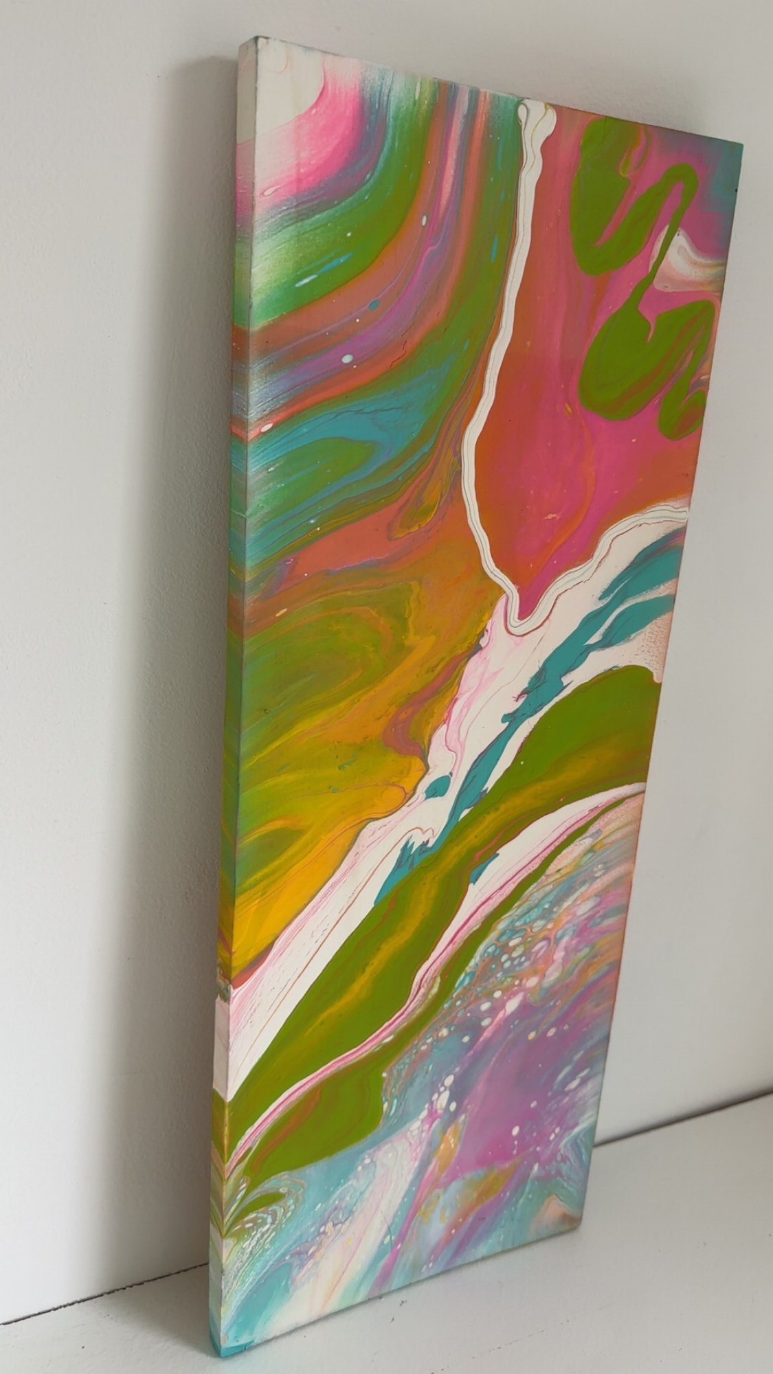 Bright & Colorful Abstract Acrylic Pour Painting. 9"x24"
