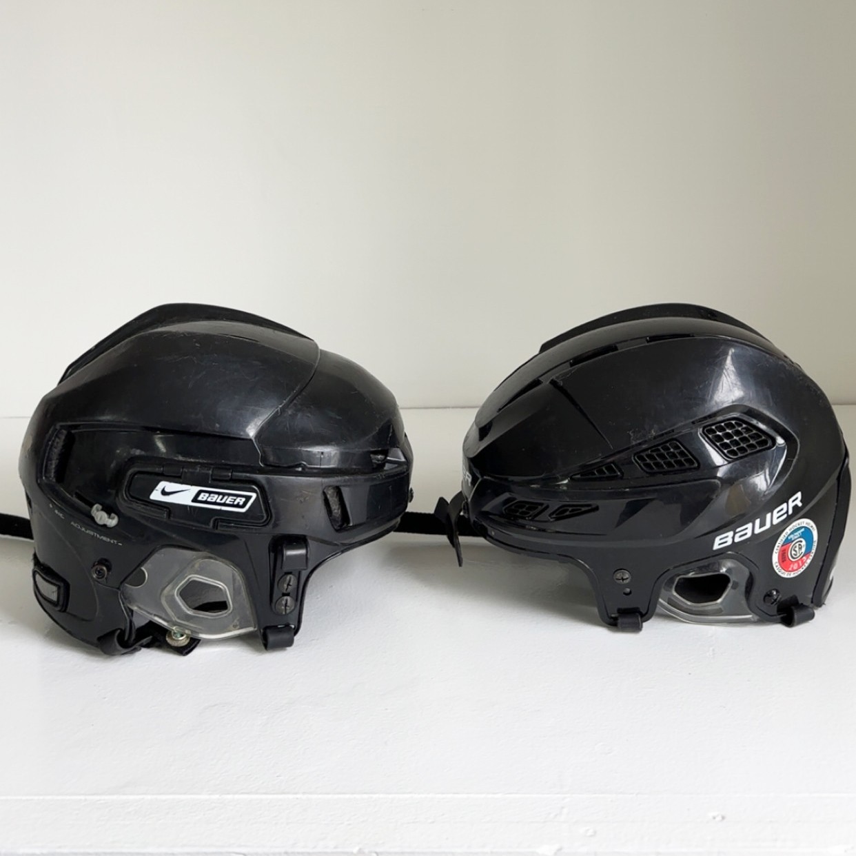 Two Pre-owned Bauer Hockey Helmets, Black Color