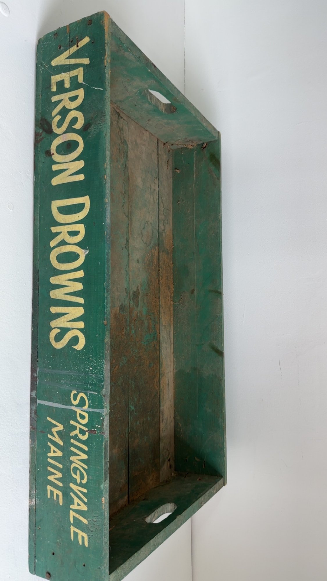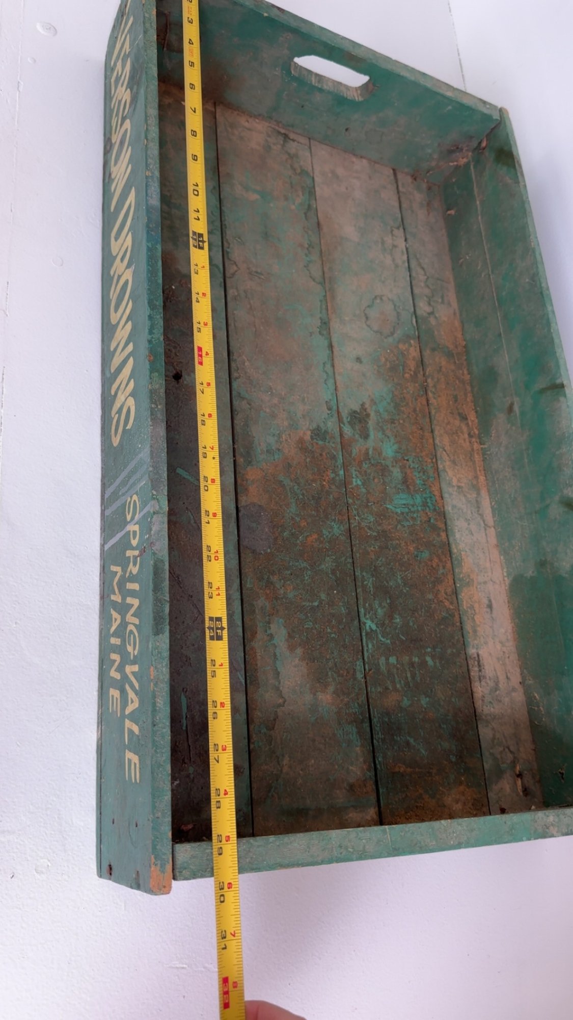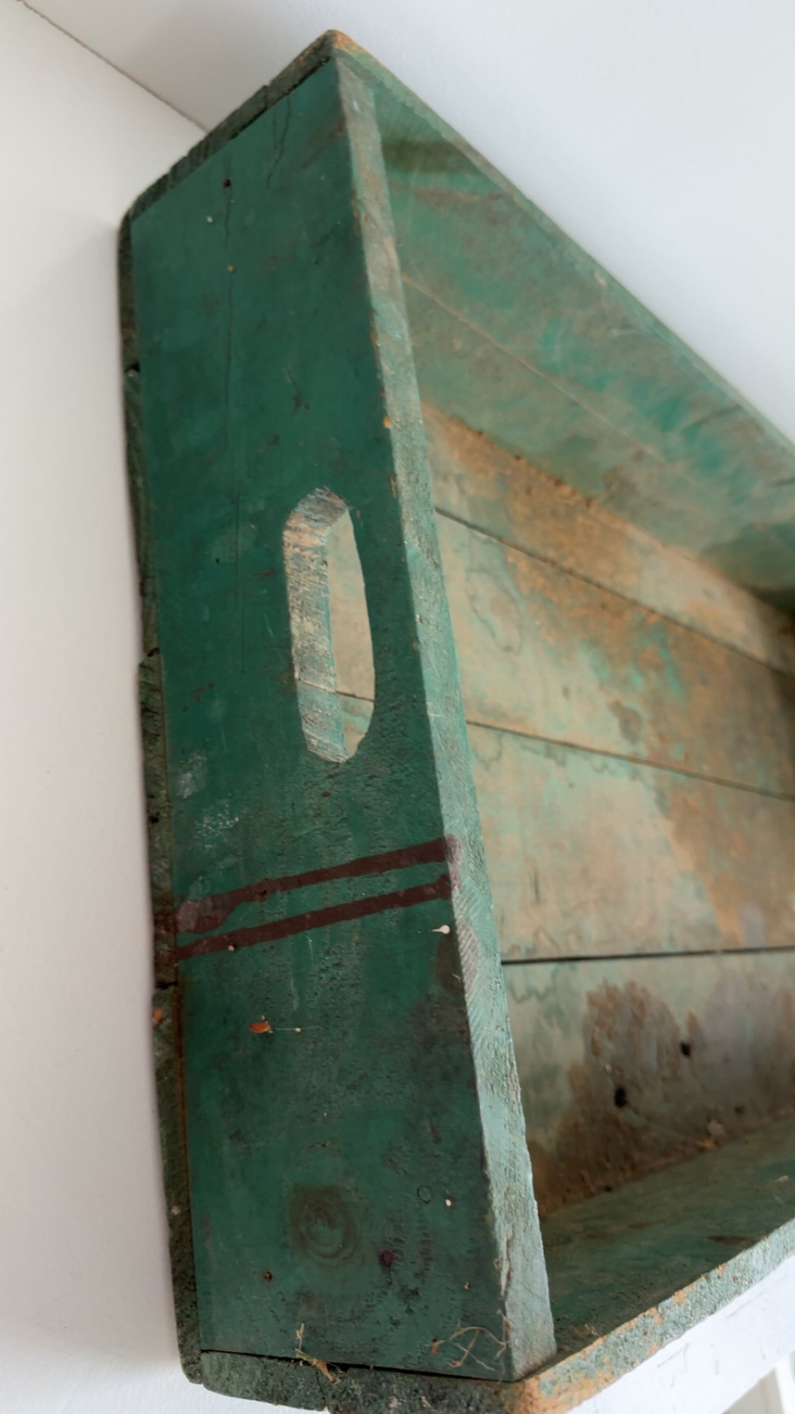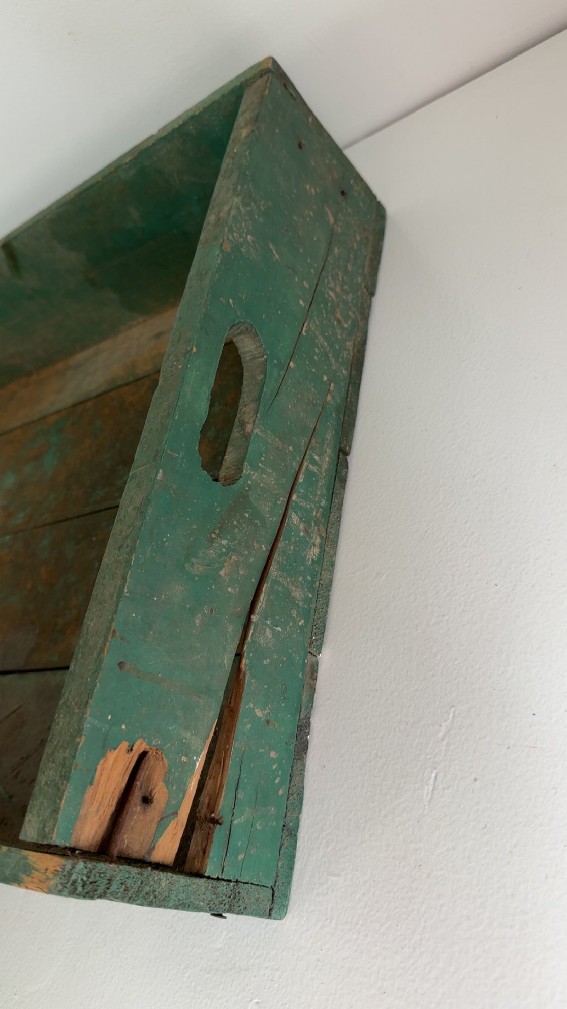 Nice old wooden crate to hold bottles or farm goods. Great home decor center piece for a table!