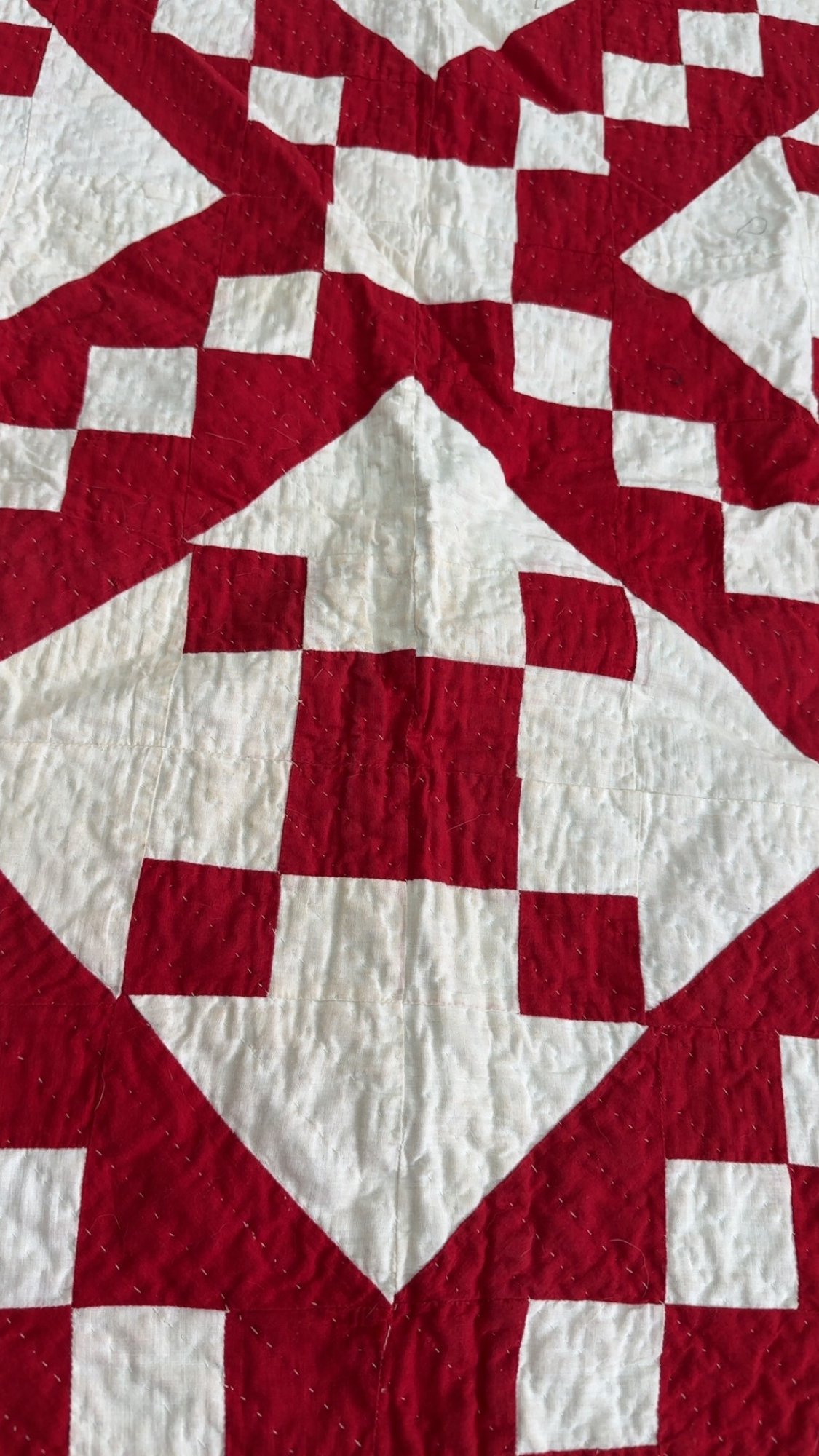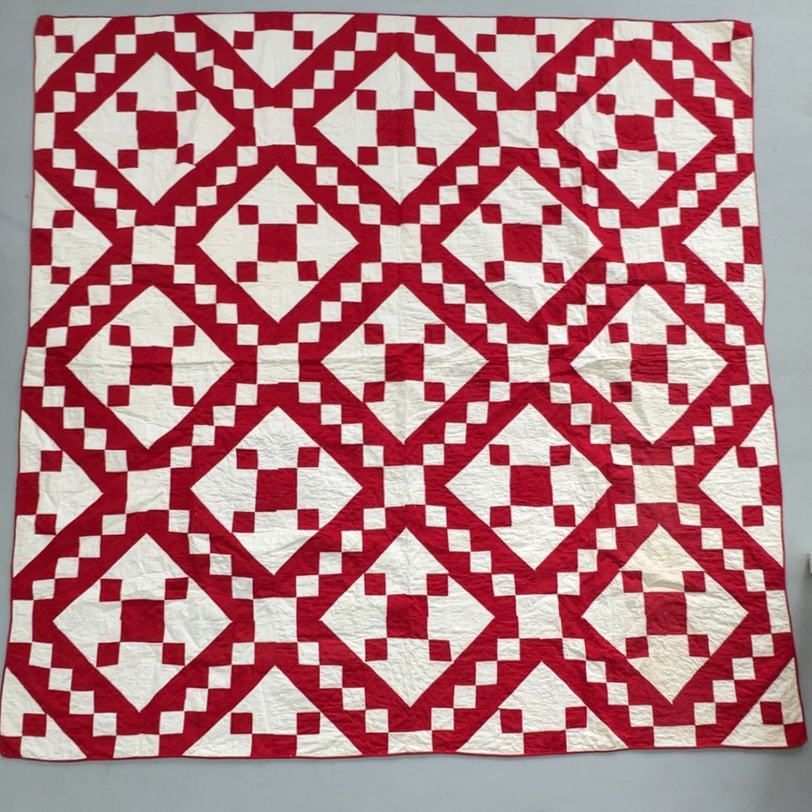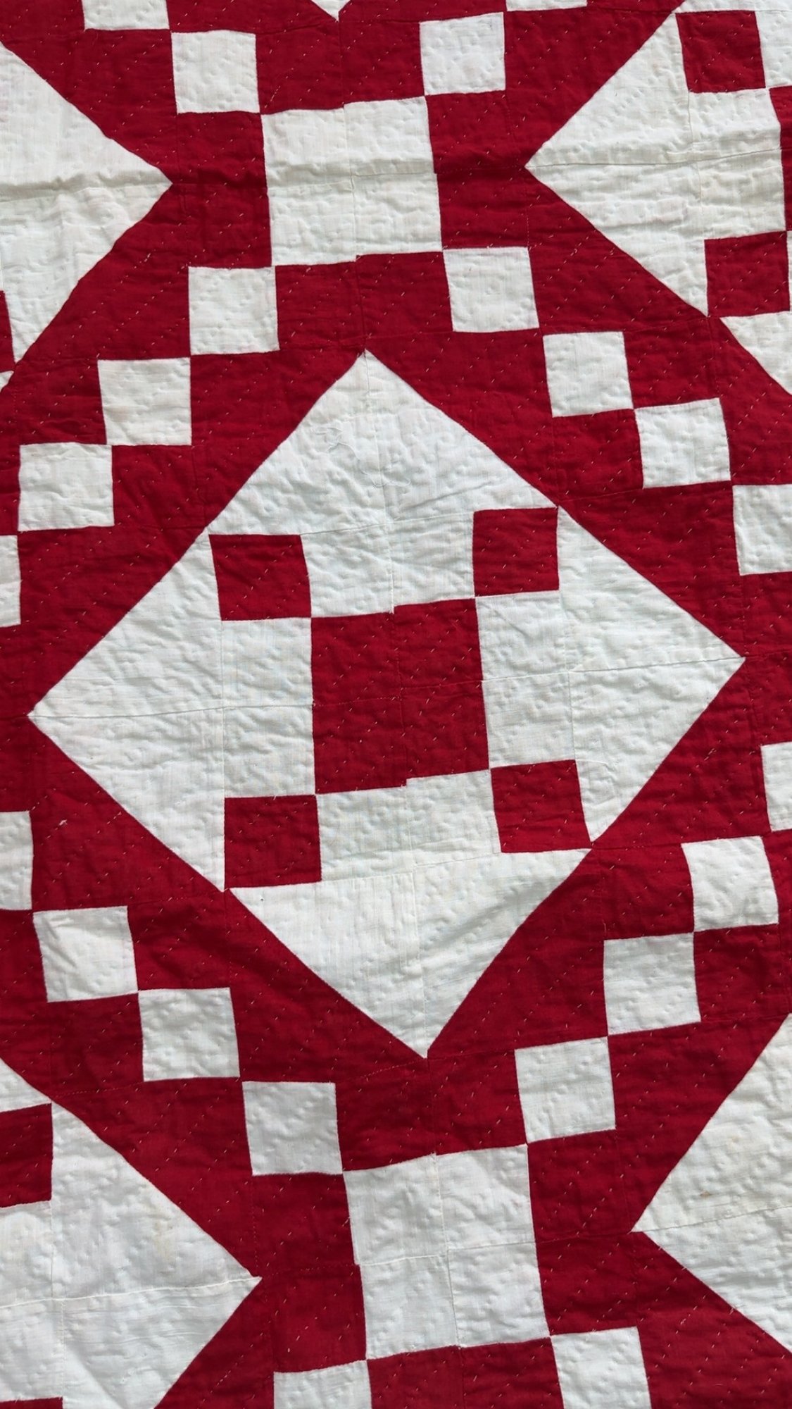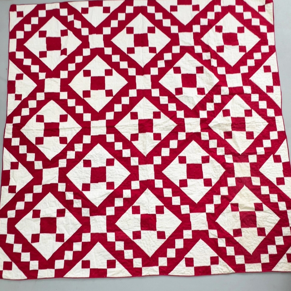 Wonderful Jacob's ladder style pattern on this quilt with squares/diamonds. Great condition for it's age.
