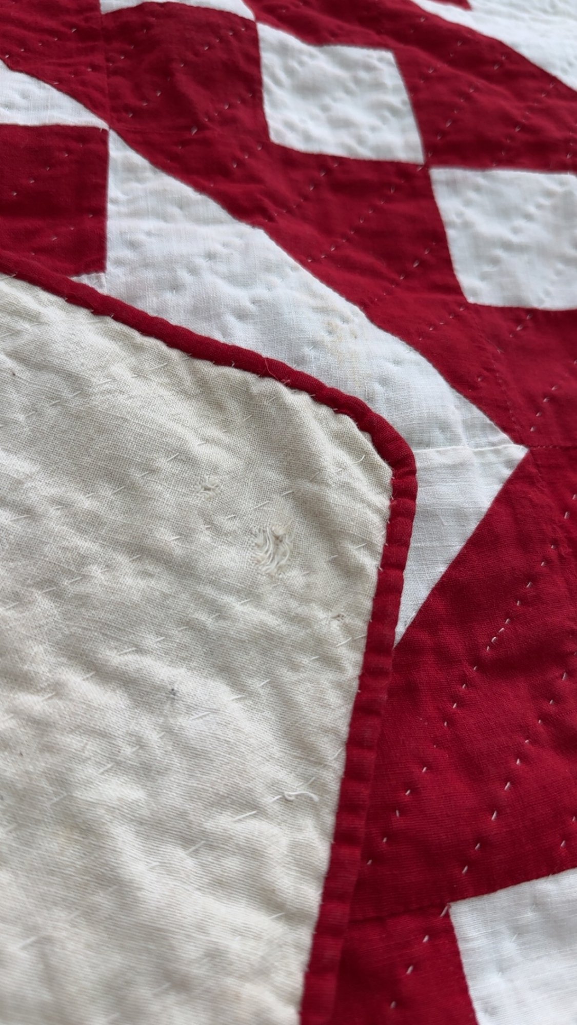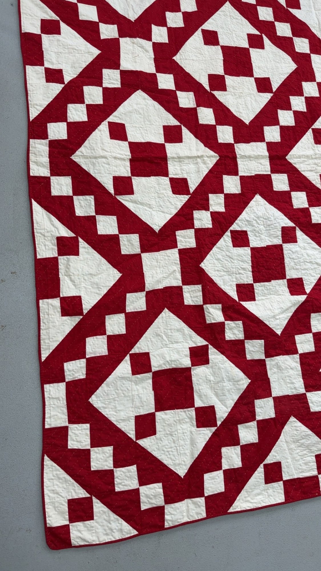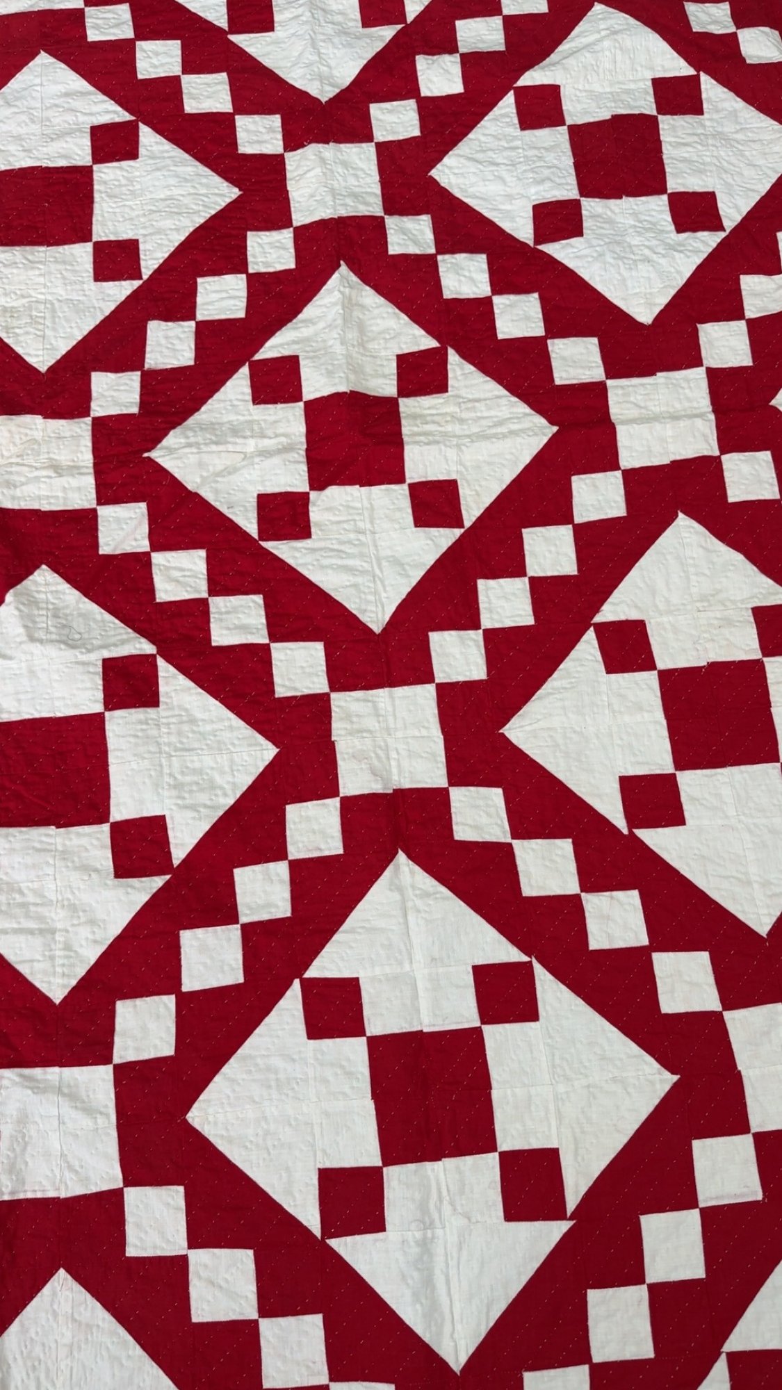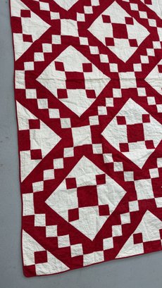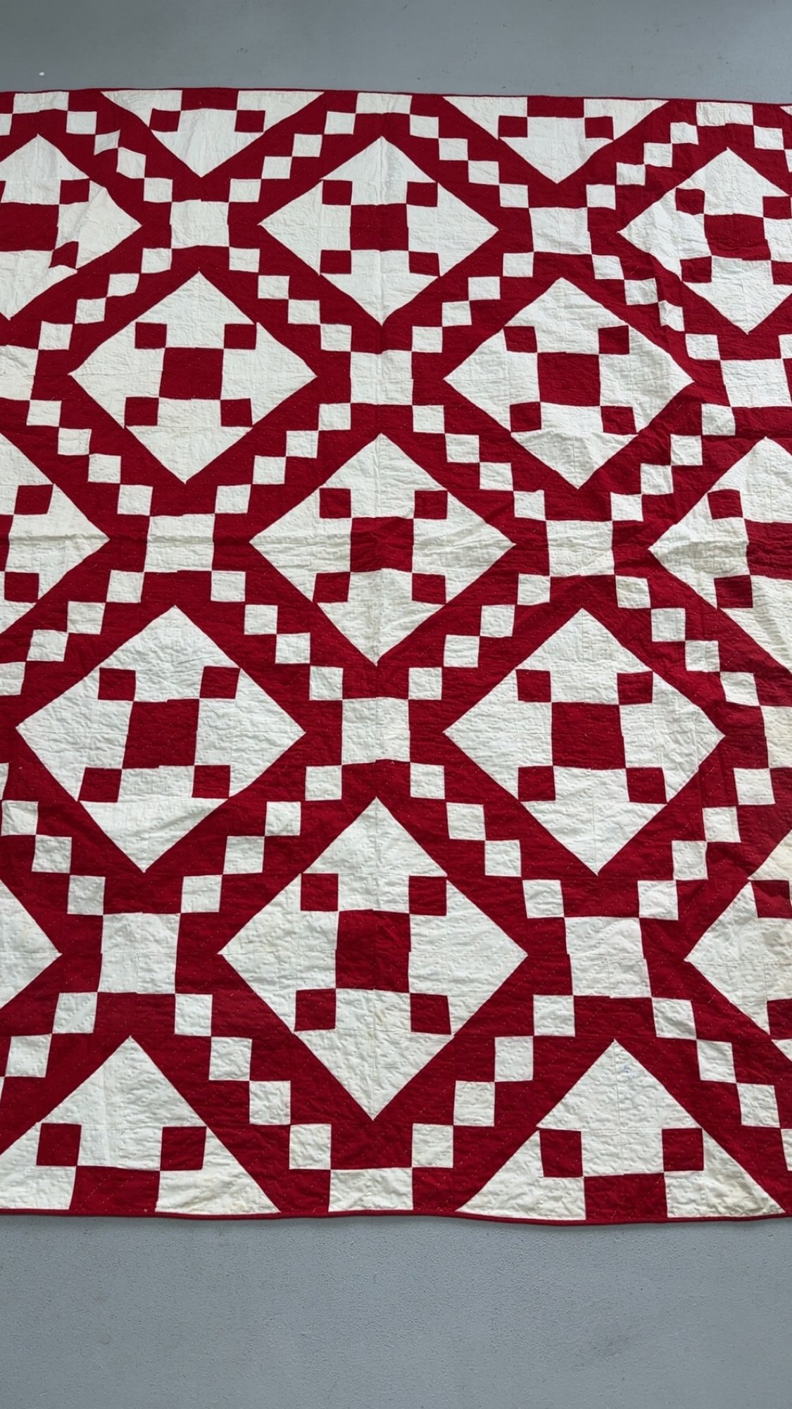 Wonderful Jacob's ladder style pattern on this quilt with squares/diamonds. Great condition for it's age.