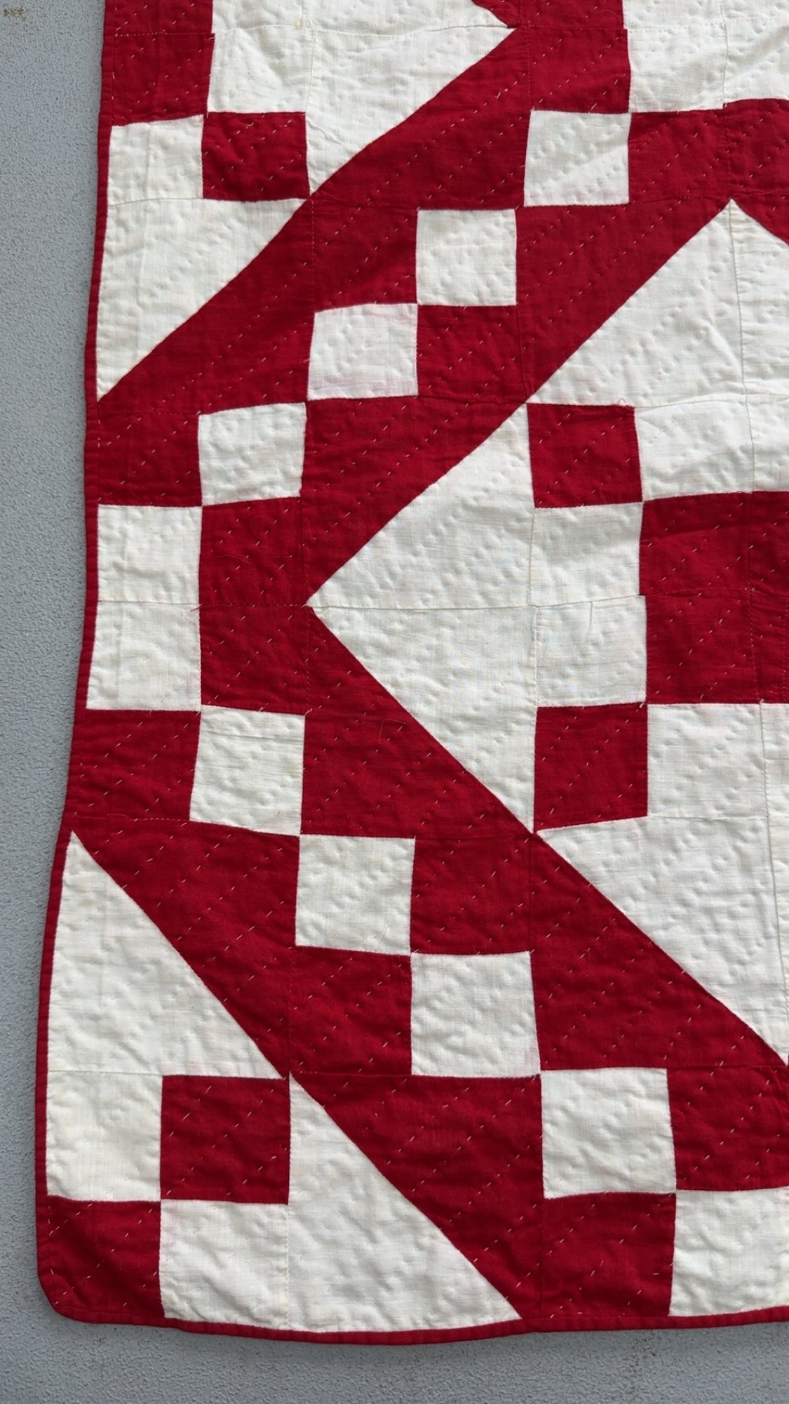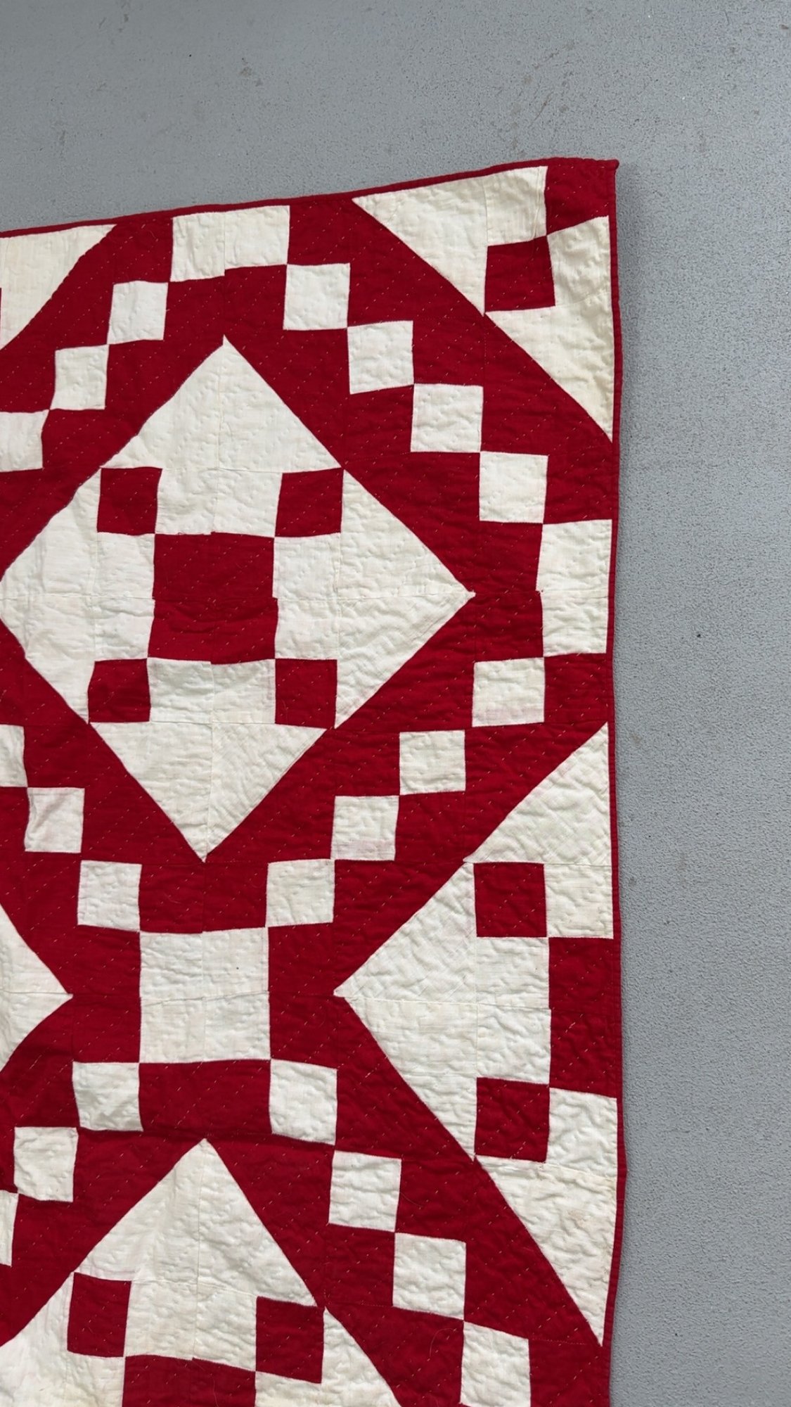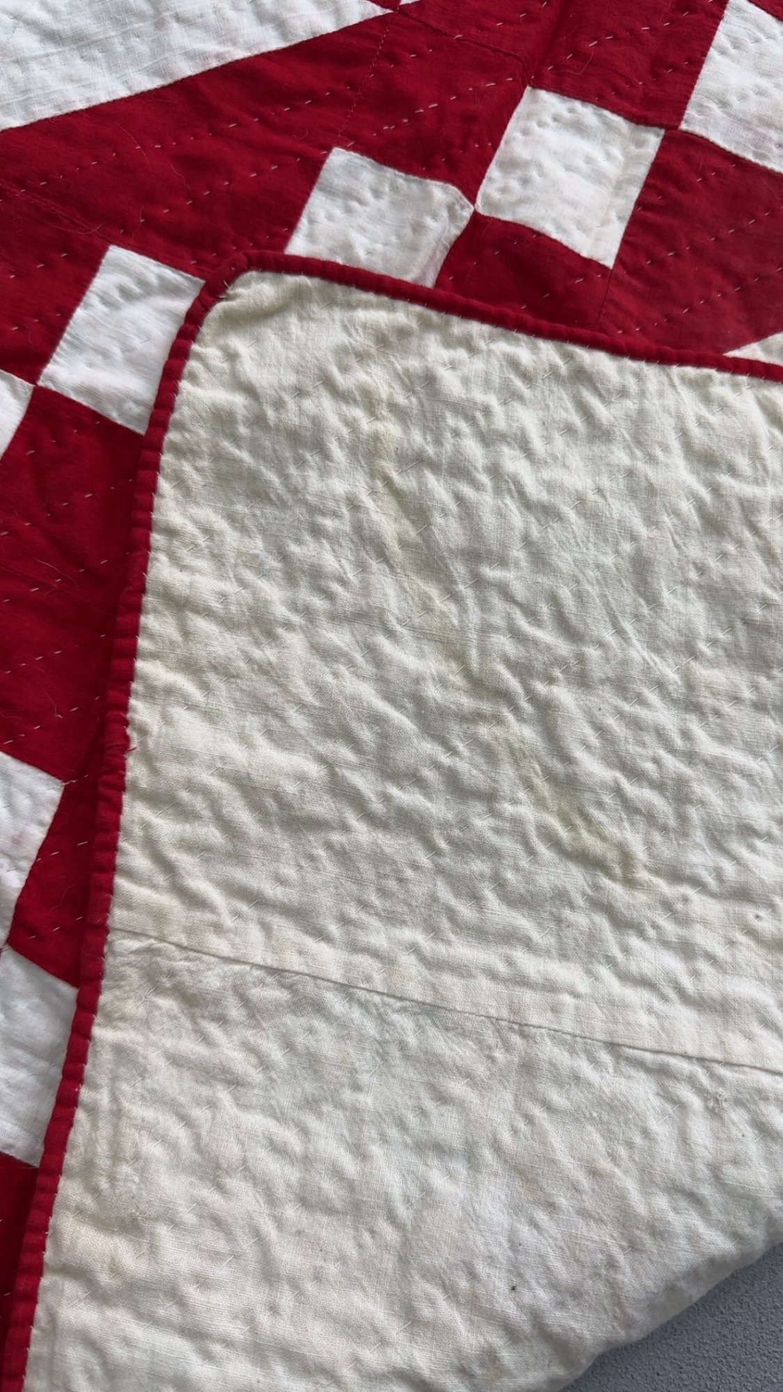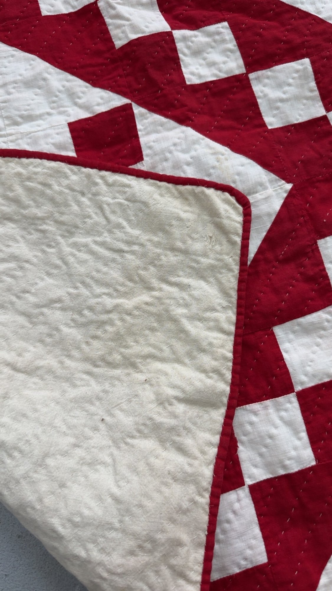 Wonderful Jacob's ladder style pattern on this quilt with squares/diamonds. Great condition for it's age.