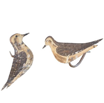 Fun little painted birds, possibly decoys at one point, turned into tie backs for window treatments.