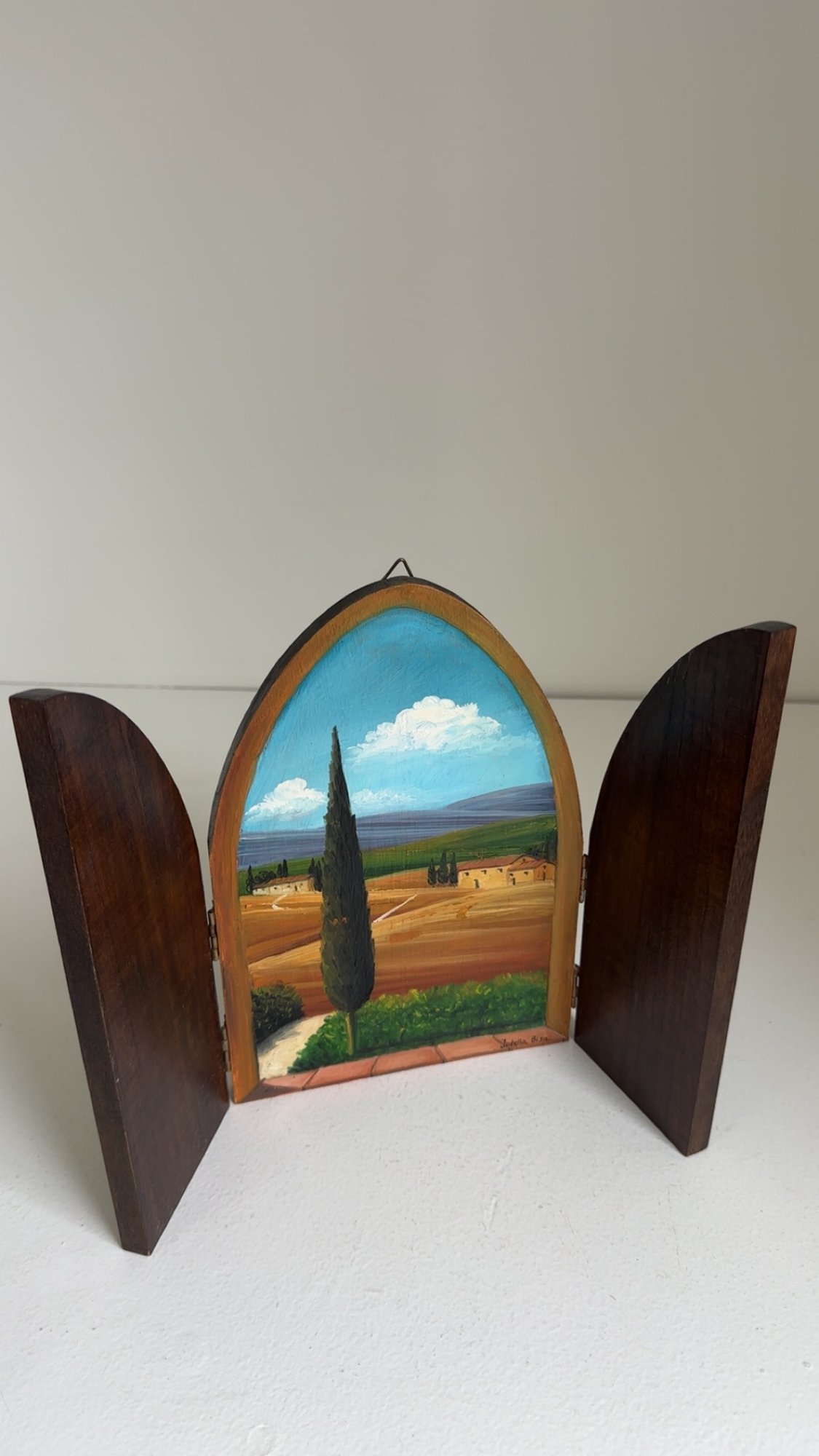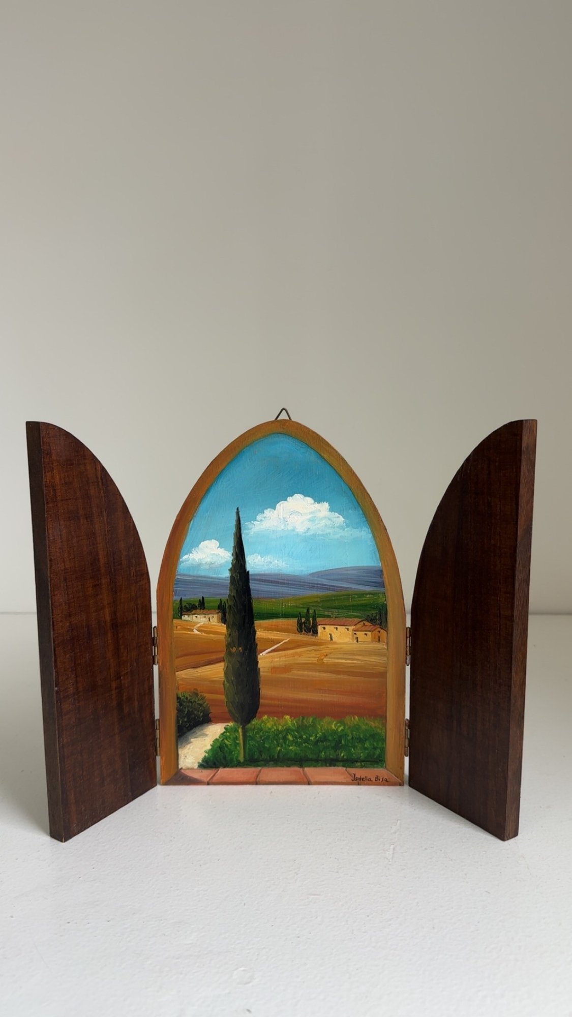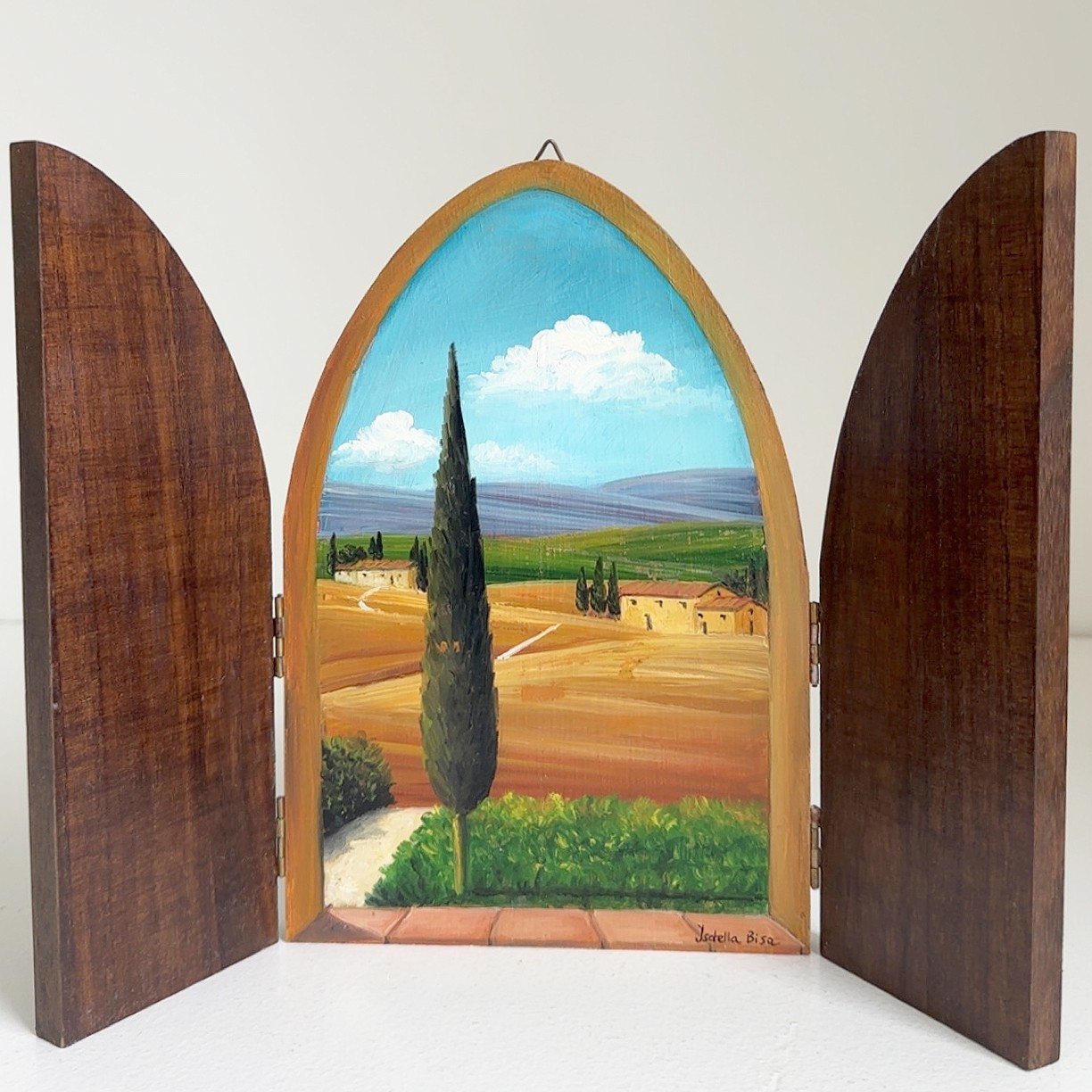 Vintage Triptych Painting Of A Tuscan Landscape Signed Isabella Bisa