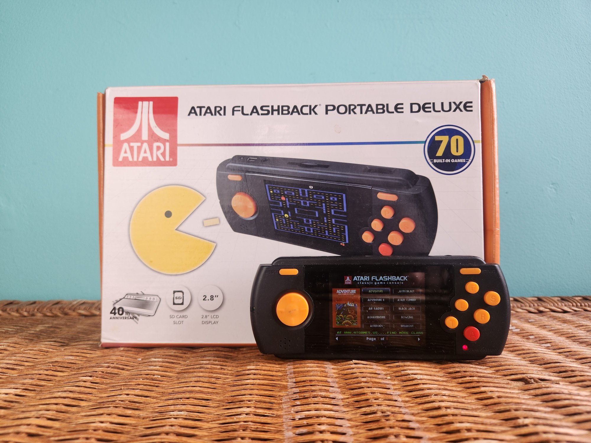 This handheld console features 70 built-in Atari 2600 classics and an SD card slot for expanding your gaming library on the go. The set includes the original 40th-anniversary packaging and the necessary charging cable for immediate play.