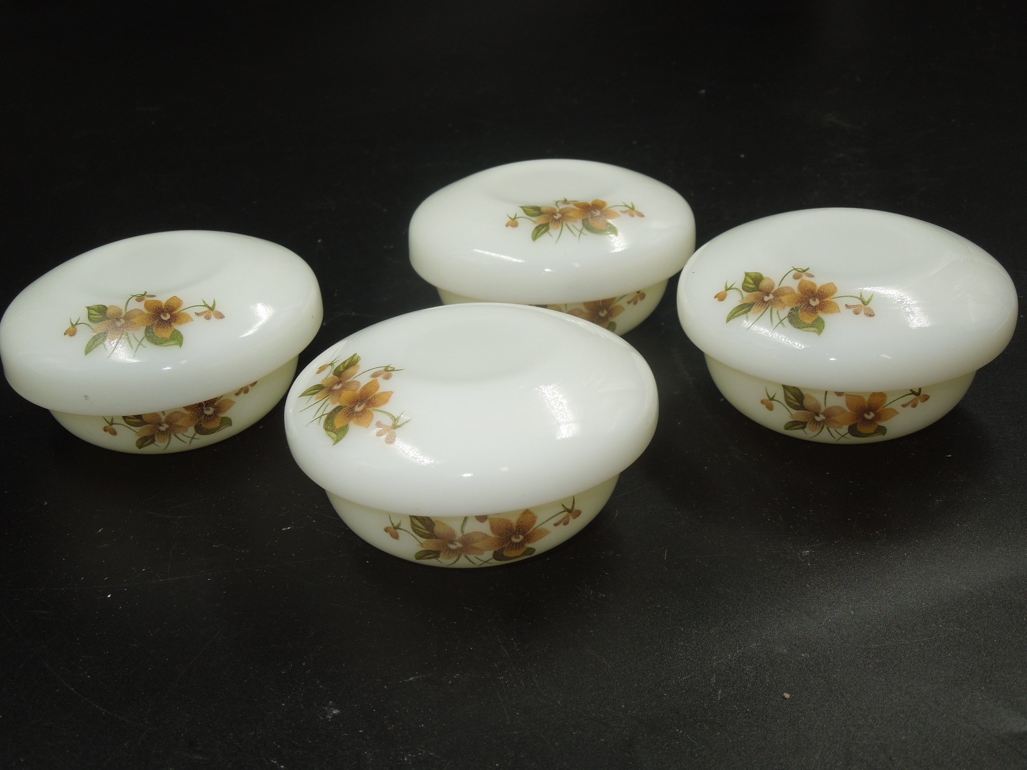 As shown, see pictures. About 3" in diameter and 1.5" tall.