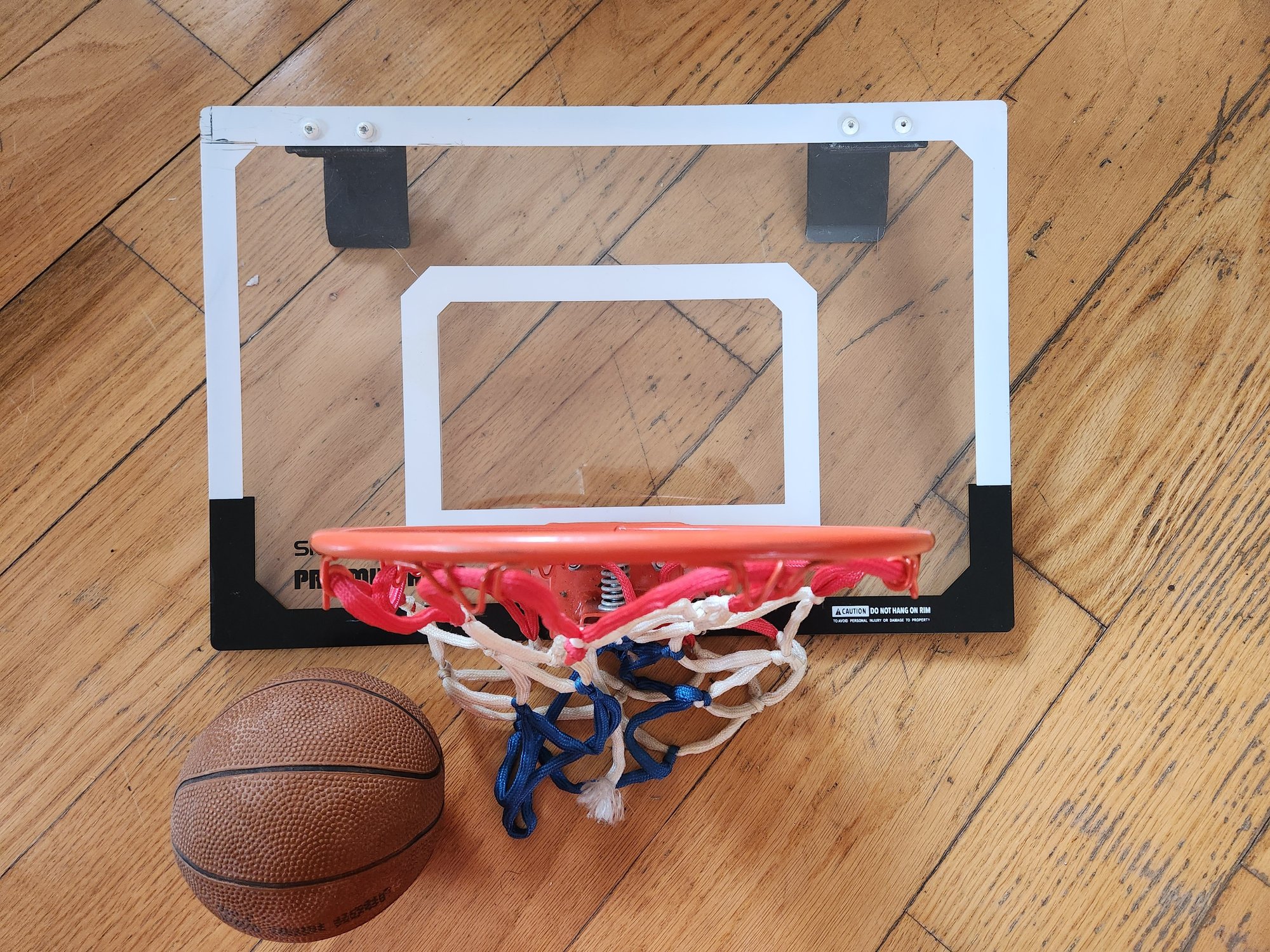 This authentic SKLZ Pro Mini Hoop brings the excitement of the game to your home, office, or dorm room. Featuring a durable, shatter-proof polycarbonate backboard and a spring-action breakaway rim, this setup is designed for easy over-the-door mounting and hours of indoor play.