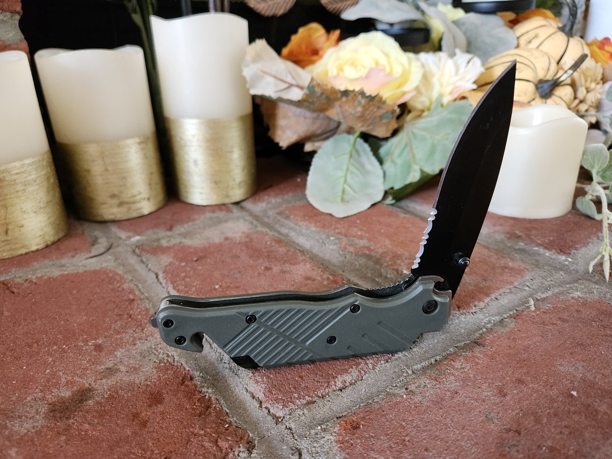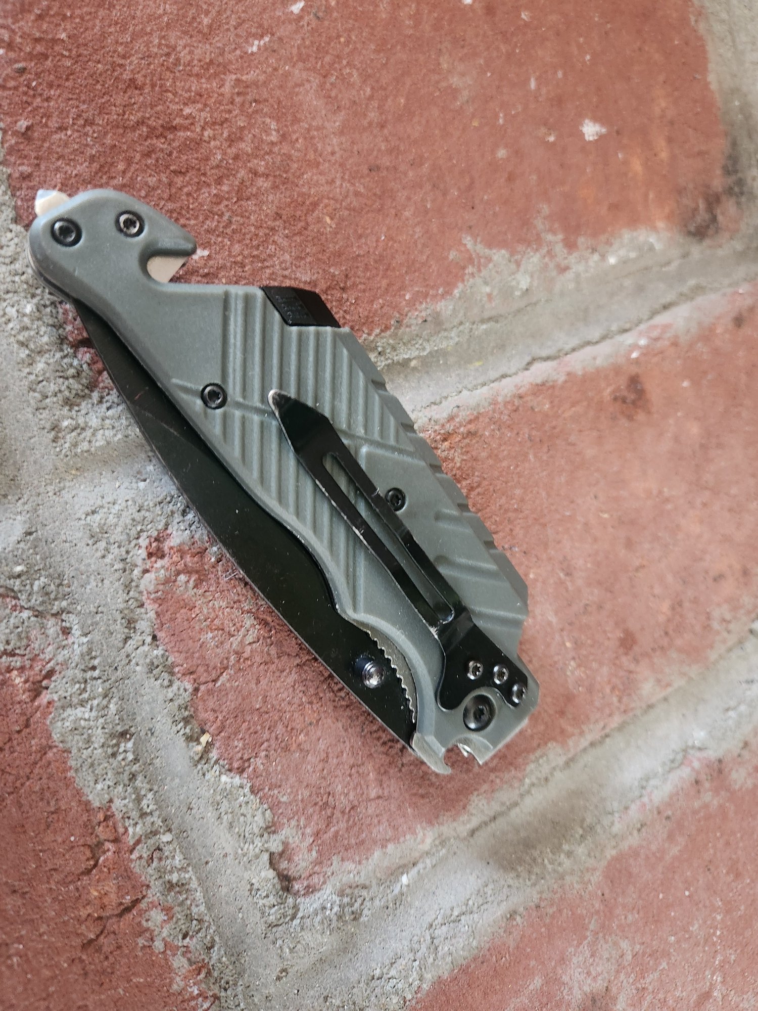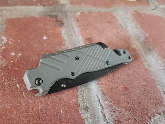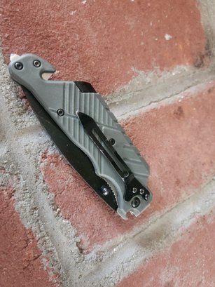 Notes: The handle and pocket clip show minor surface wear; the blade deployment is functional and the locking mechanism is secure. Comes as shown, sold as is.
