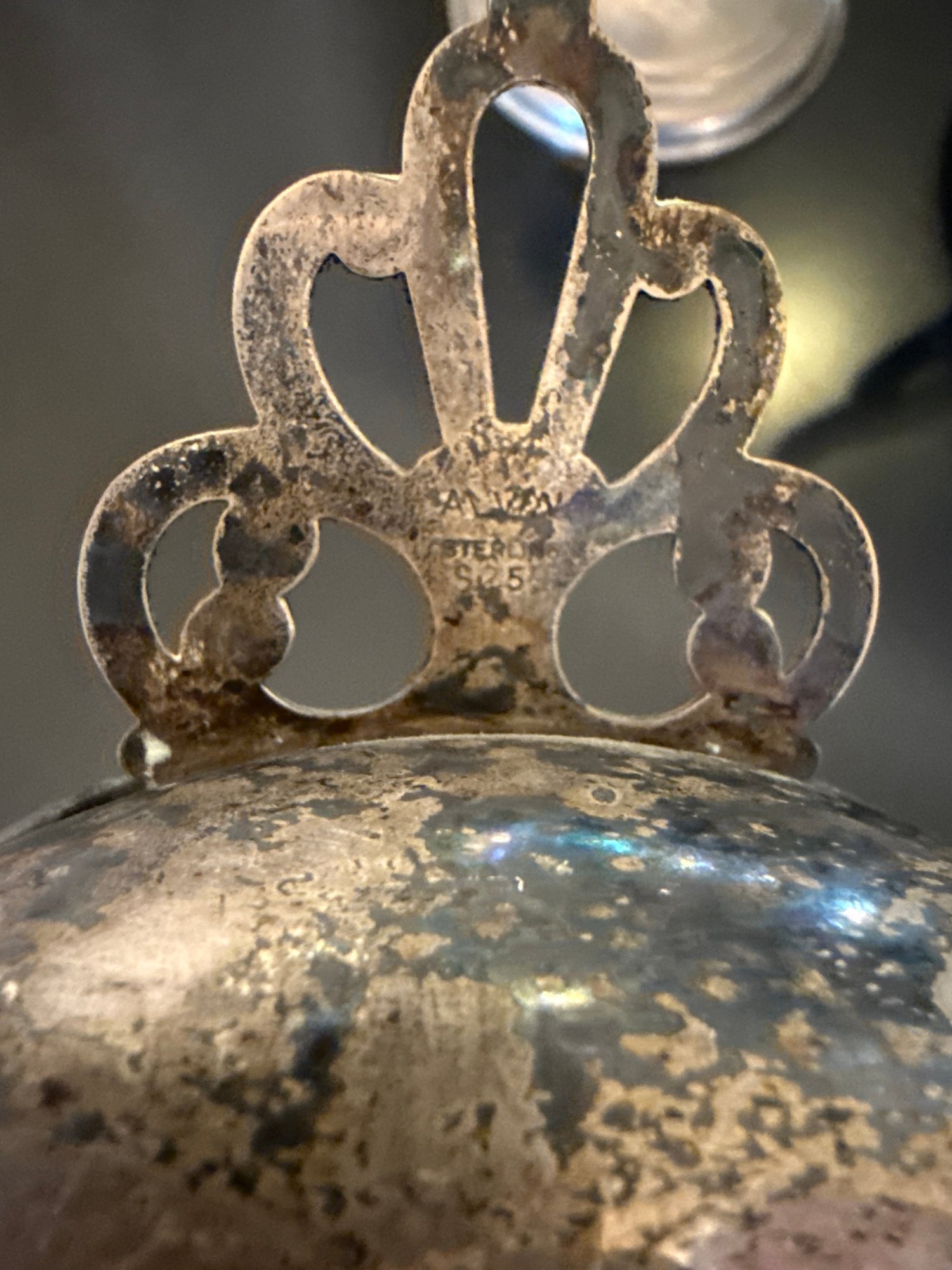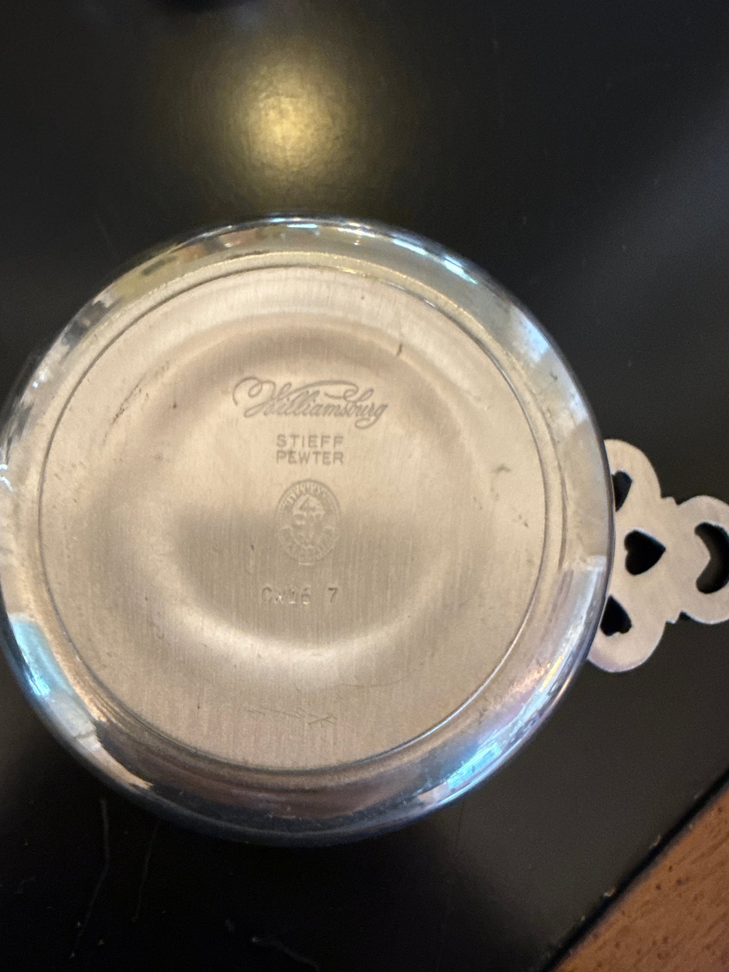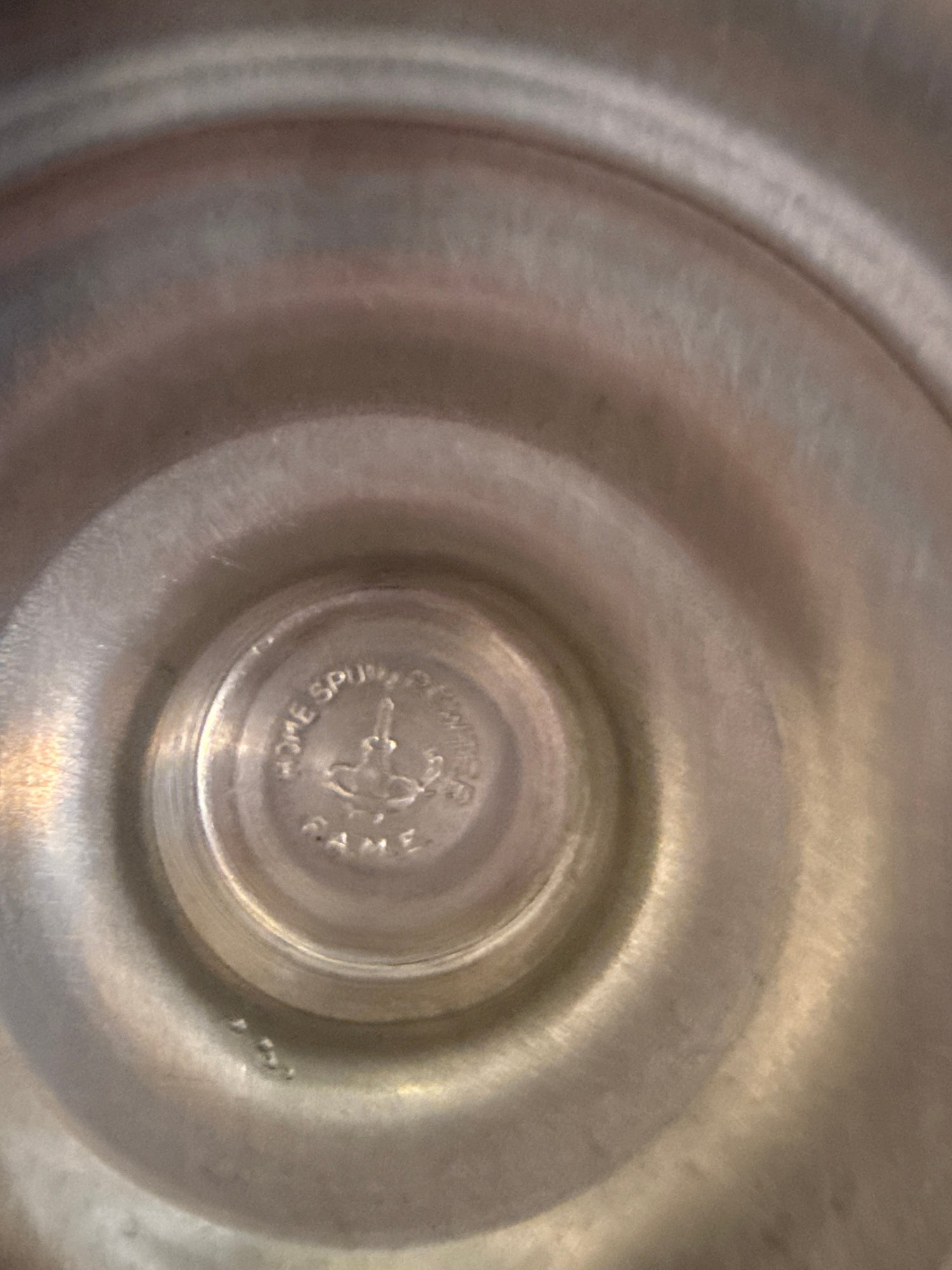 Includes the Steiff pewter bowls, sterling candlestick with hurricane, sterling bowl and brass cup.