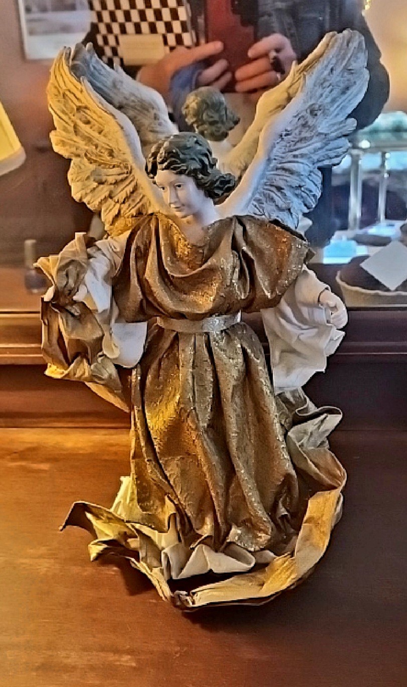 Paper mache angel tree toppers became popular decorative items in the mid-20th century, particularly from the 1950s through the 1980s. These handcrafted figures were often produced in Italy and other European countries, featuring elaborate detailing with fabric robes, feathered wings, and metallic gold or silver finishes. The tradition of placing angels atop Christmas trees dates back to Victorian times, symbolizing the angels who announced Christ's birth. These vintage angel tree toppers are highly valued by collectors of Christmas memorabilia and vintage holiday decorations for their nostalgic appeal and artisanal craftsmanship. They represent a bygone era of holiday decoration when handmade ornaments were treasured family heirlooms passed down through generations.