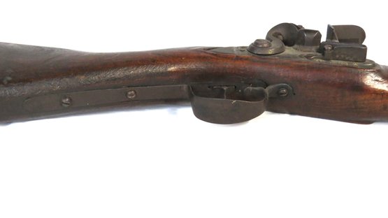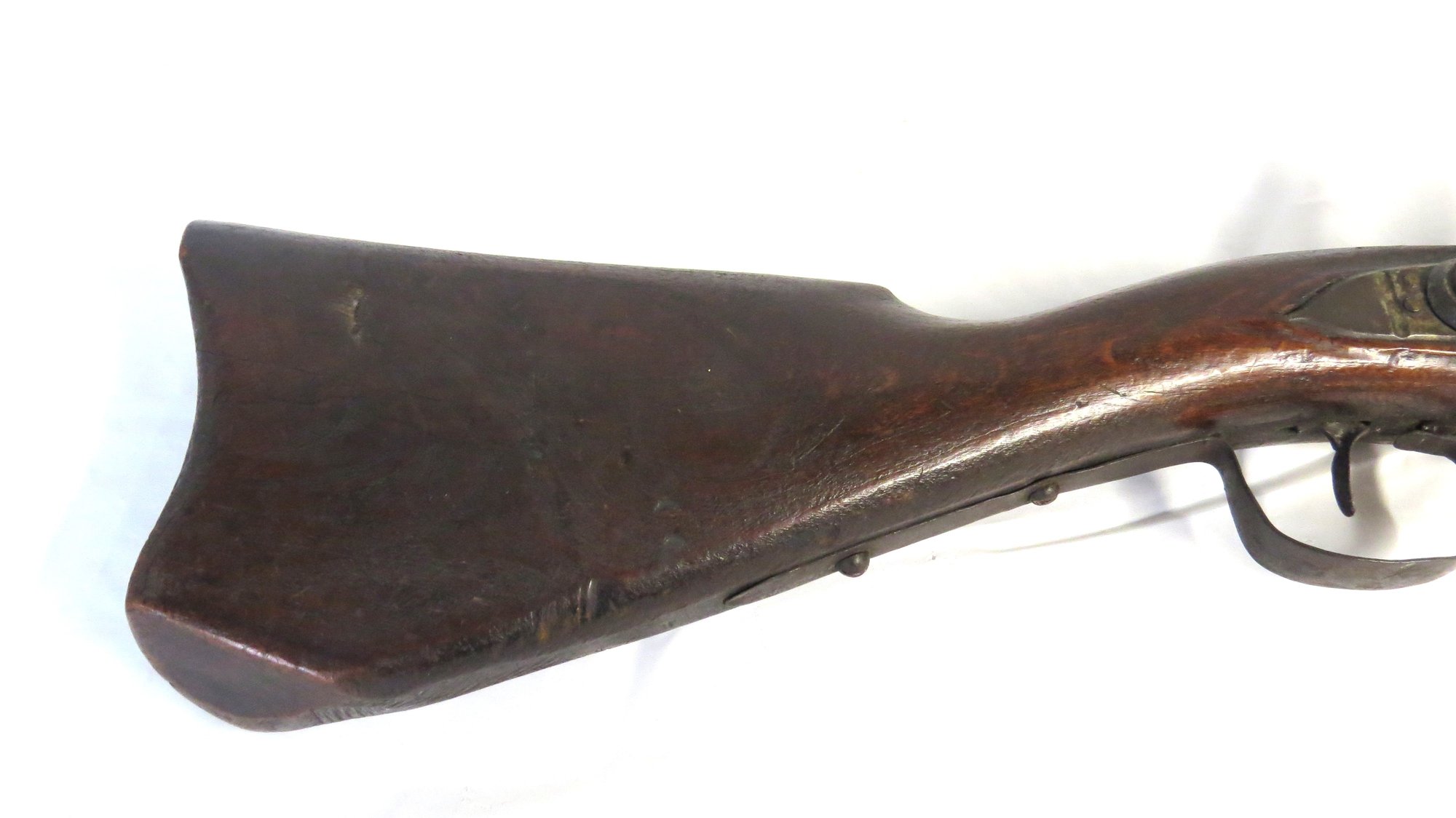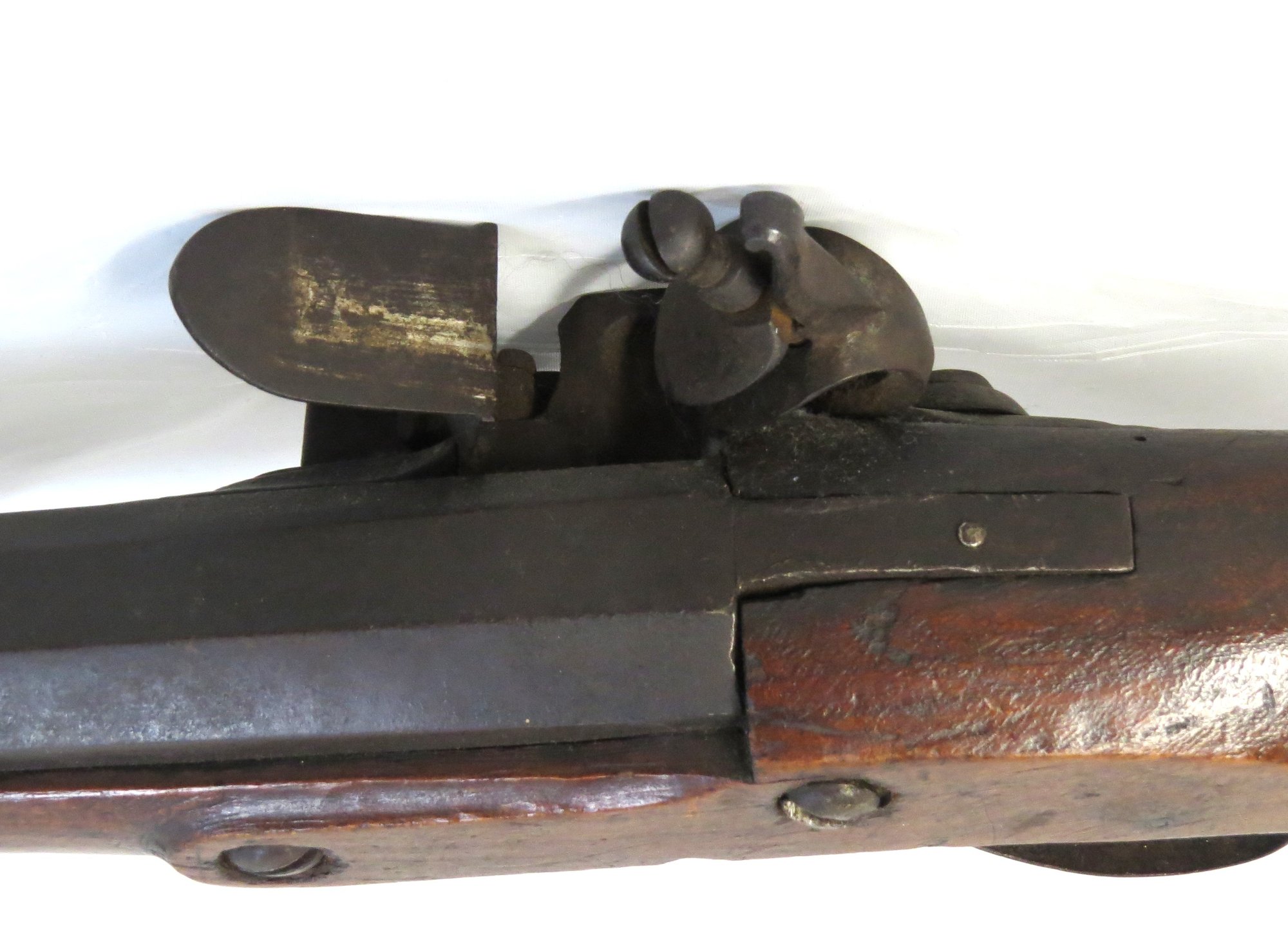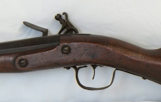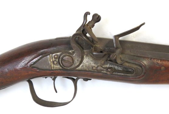 Notes: 18th Century Blunderbuss with original flintlock and ram rod, barrel 24” overall length is 38”. Appears to be all original