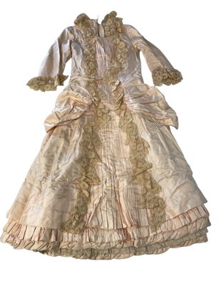 Child's dress has ruffles, lace and nice detail