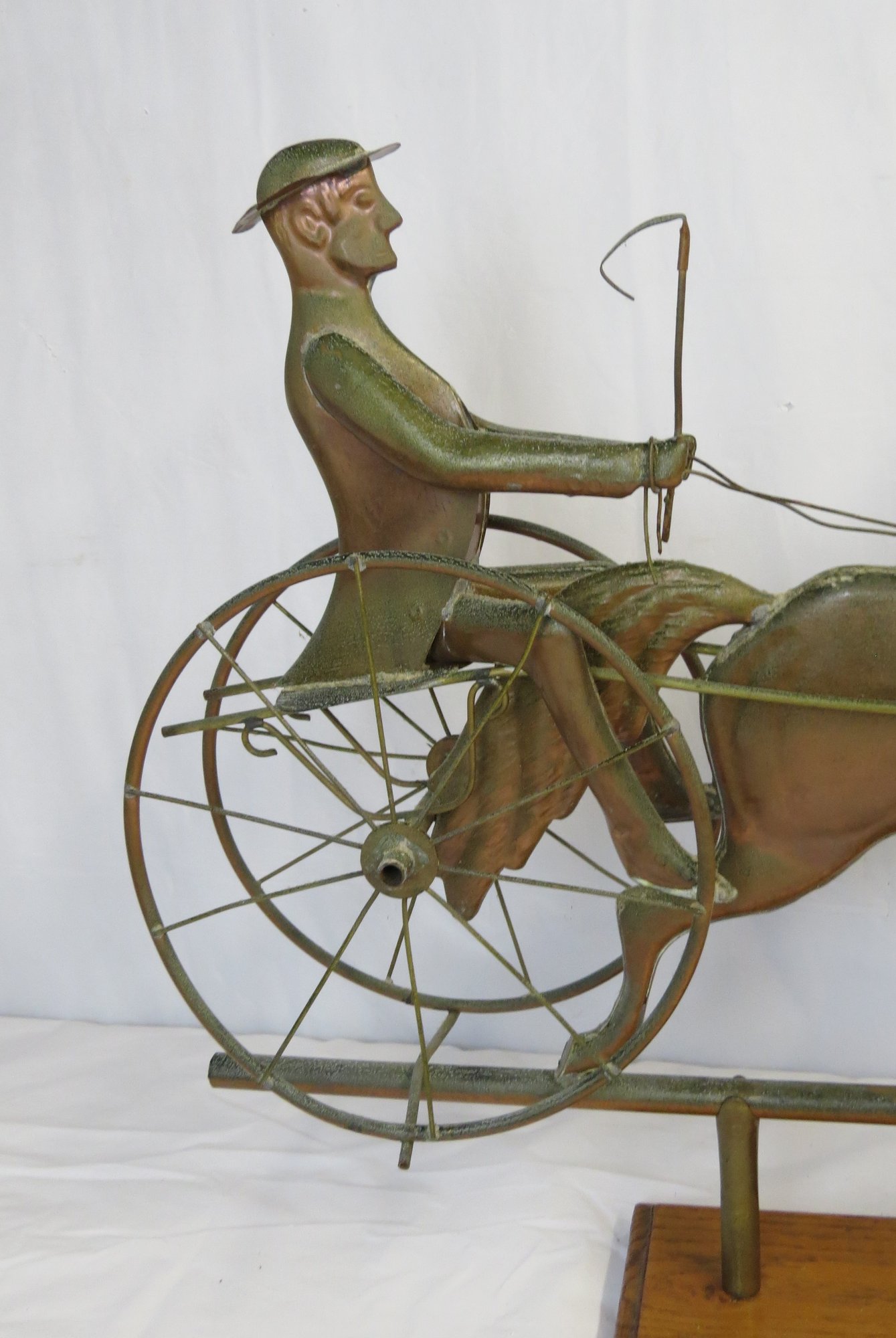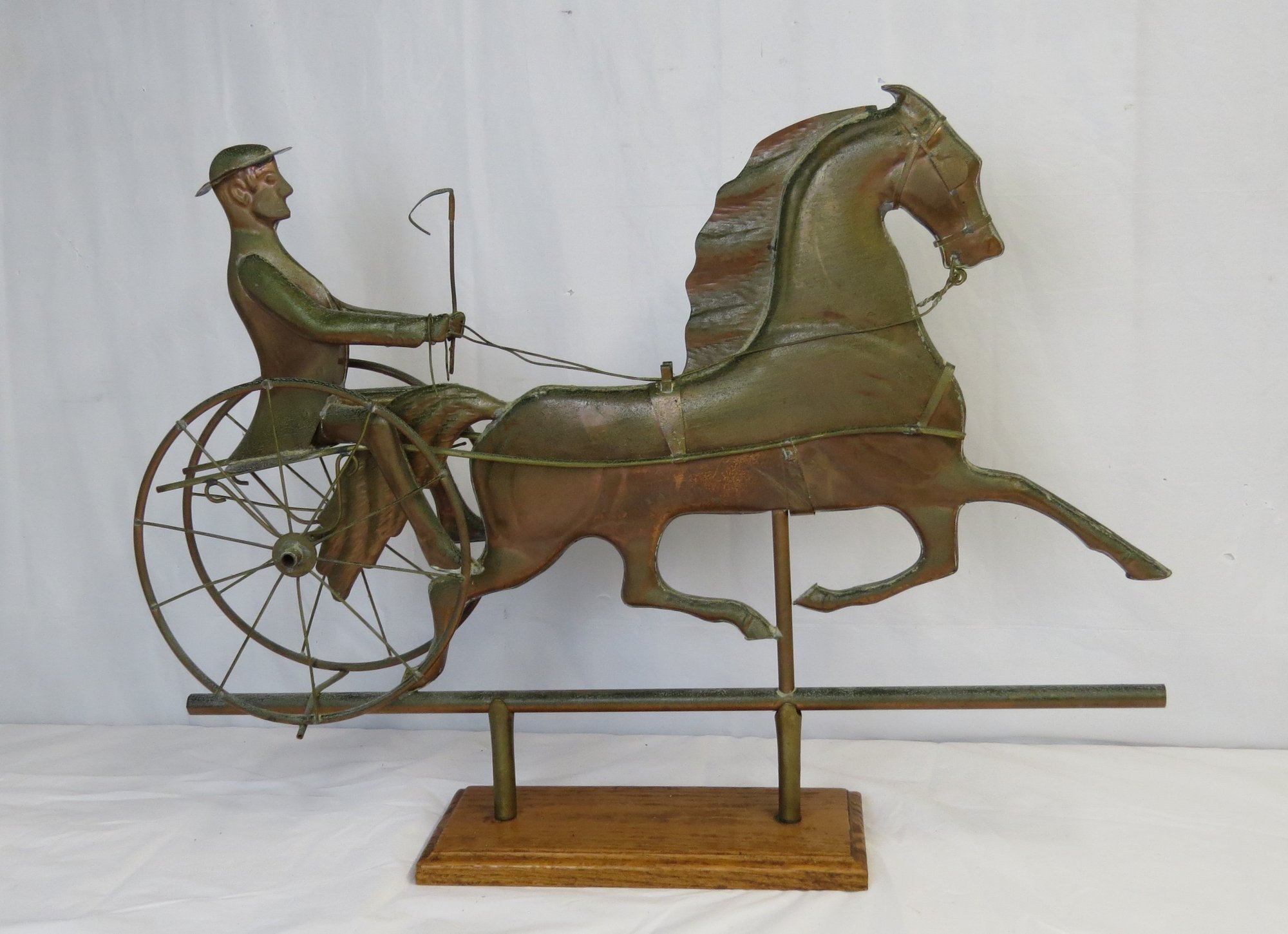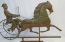 20th century horse and sulky copper weathervane in good condition, 27” long x 20” h.