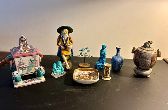 Asian 9 Piece Lot With Incense Burners And Figures