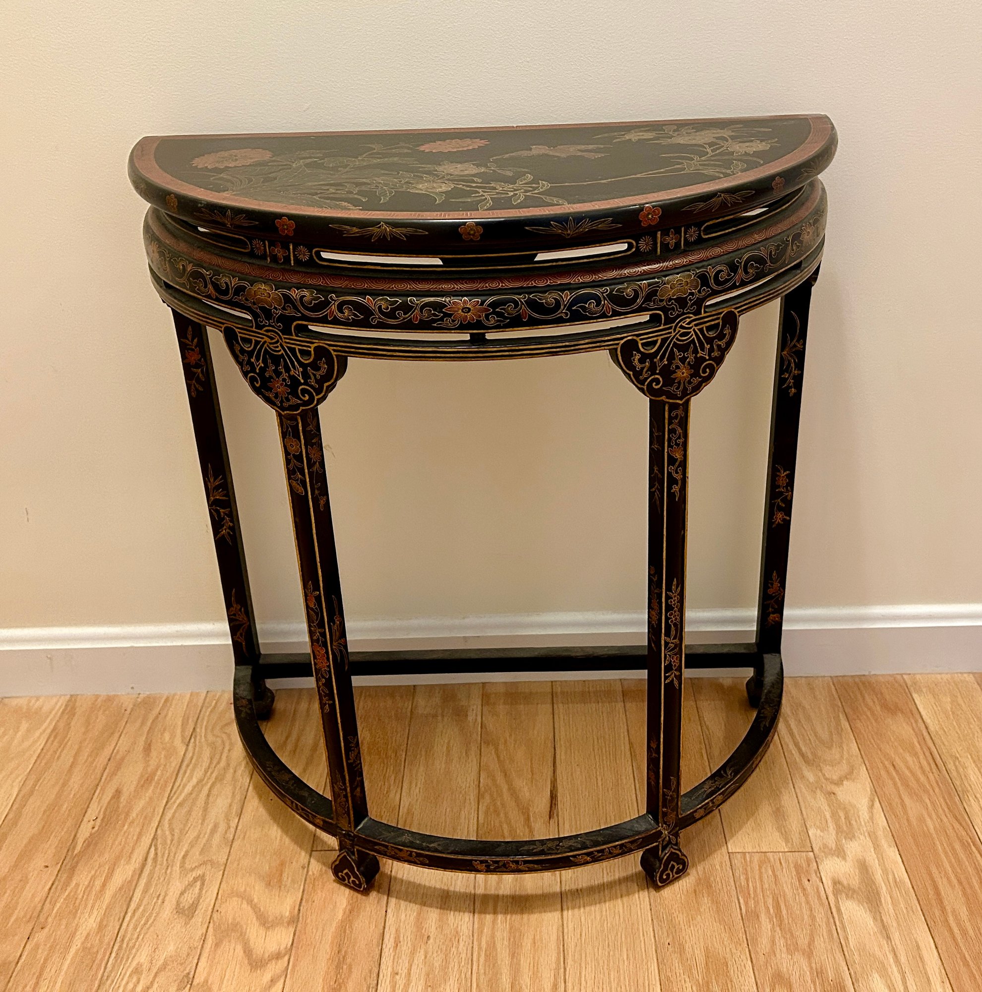 Black Paint Decorated Half Moon Table - 11.5x22.5x24