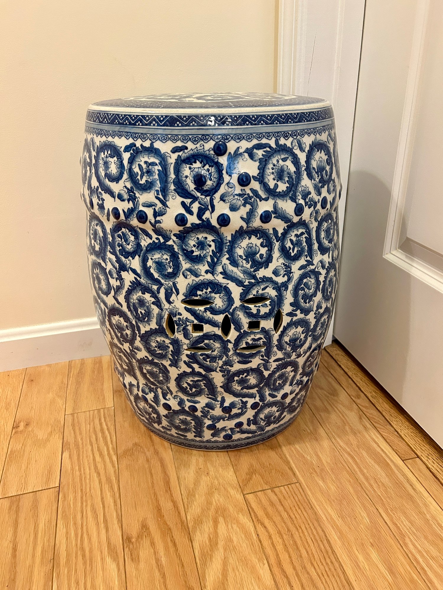 Blue And White Ceramic Garden Seat 18 Inches Tall - 14 Inches Wide