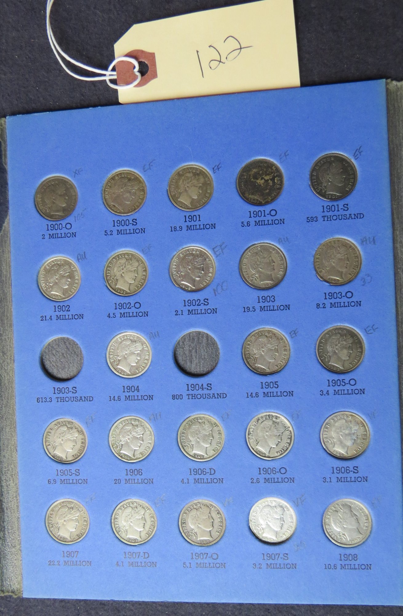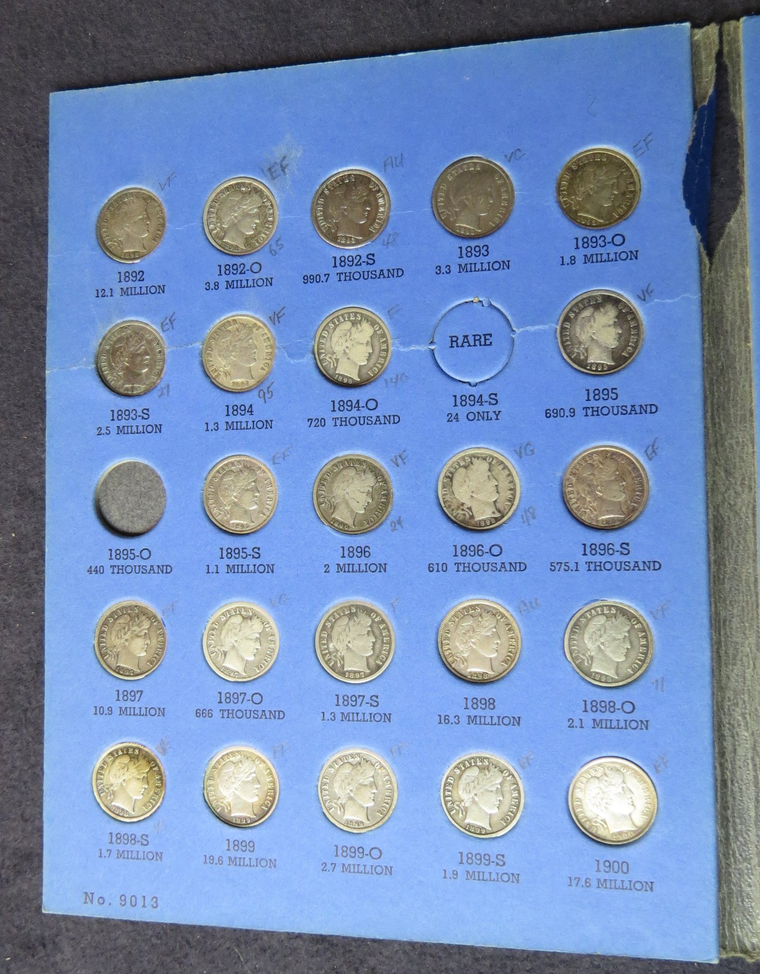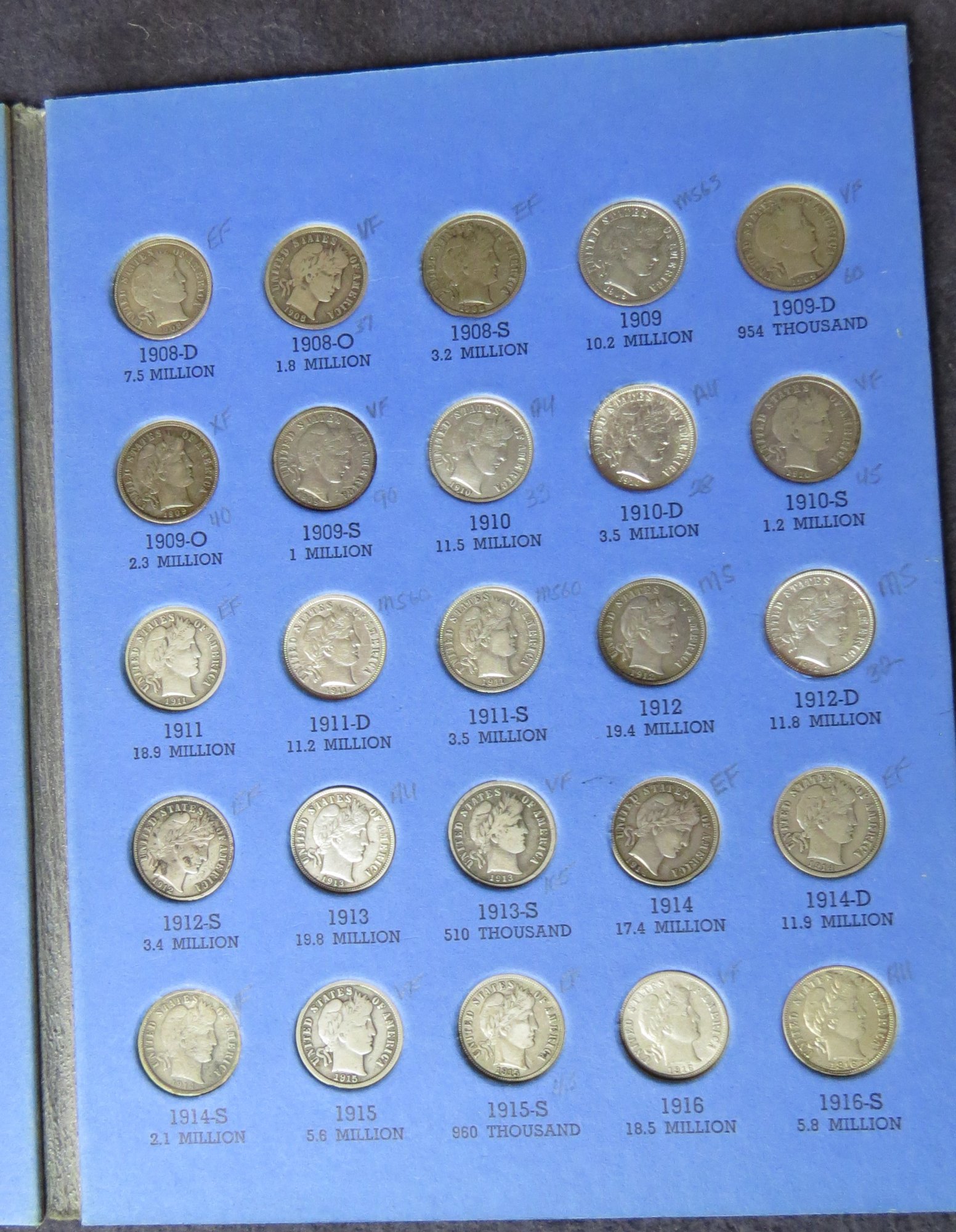 Book Barber Dimes 1892-1916, 71 Coins In Book See Pictures