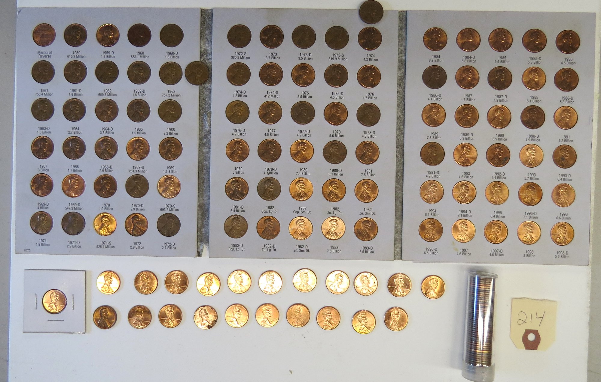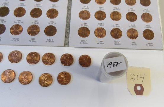 sold with forty-five 1982, nineteen 2009, one 2000, one 2001, 1963-D and 1964, total 158 coins