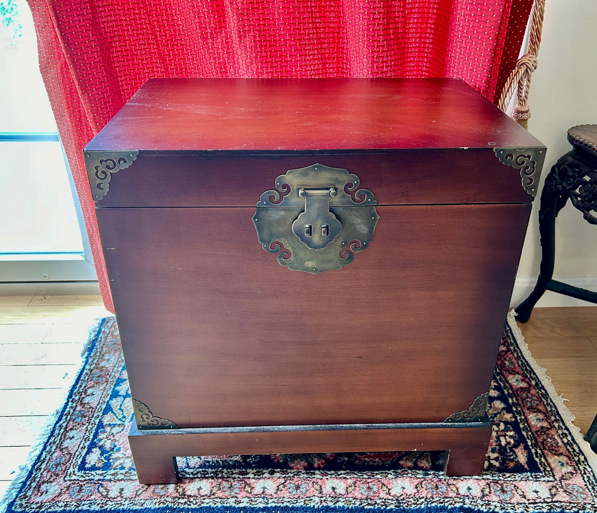 Bracket Base Asian Style Box With Brass Corners - 15.5x22x23