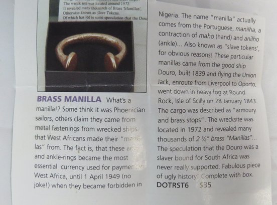 Brass “Manilla” or (slave tokens) taken from sunken ship the British ship “Doura” sunk in 1843 off Sicily