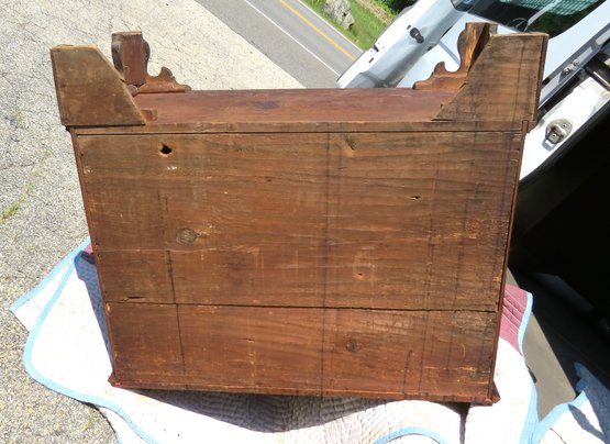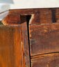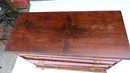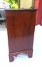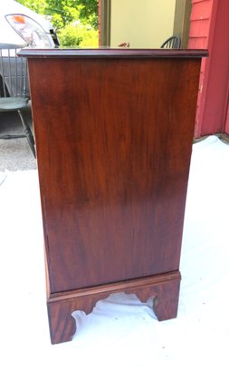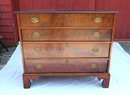 Curly maple 4 drawer Chippendale chest with oval brass hardware, molded top slid on dovetail, 39” x 17” x 35” h.