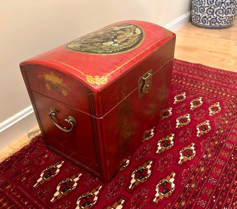 Dome Top Leather Covered Asian Style Box - 10x15.5x12