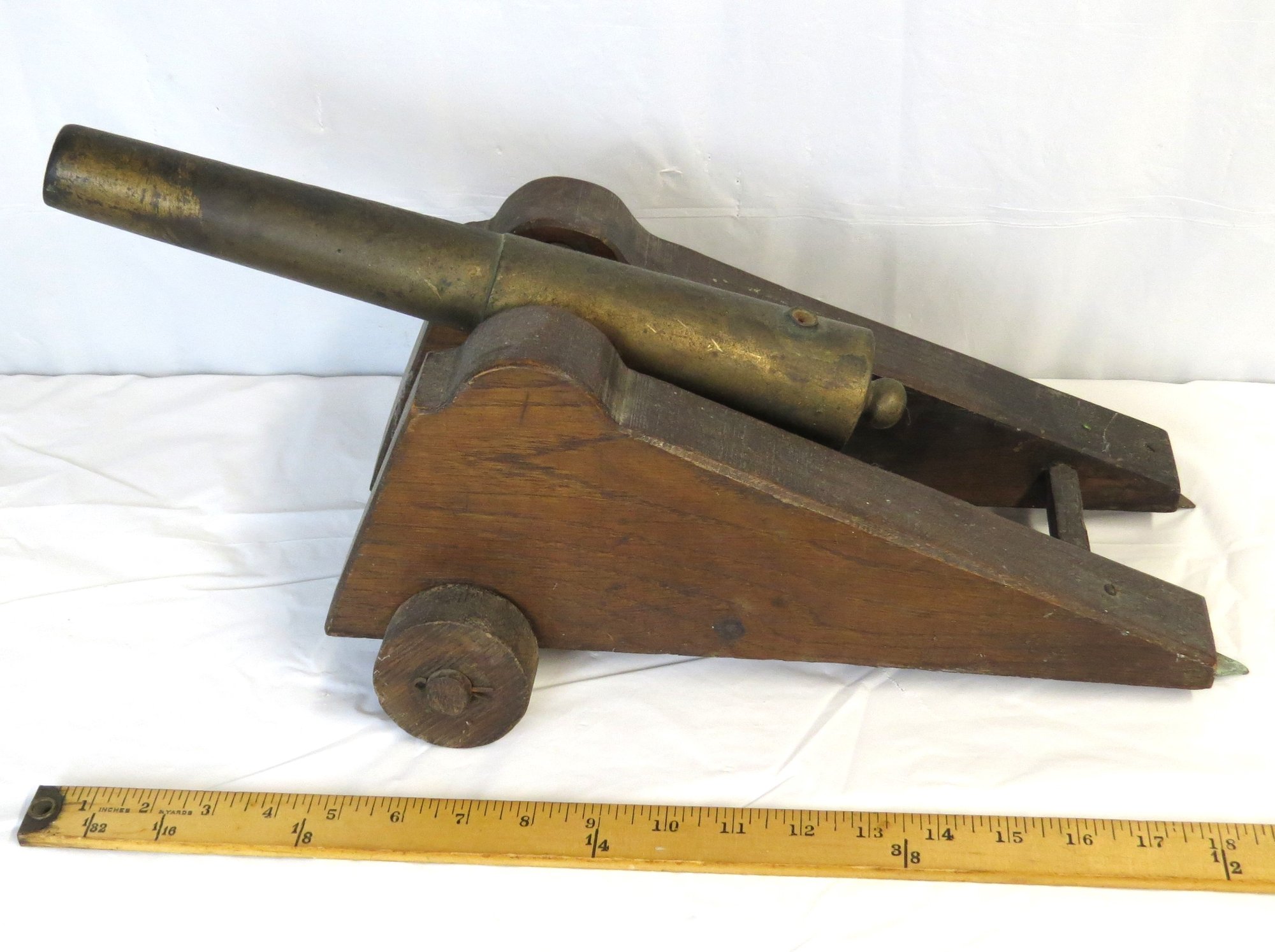 Early brass or bronze signal cannon, 14” barrel, 19 ½” overall length
