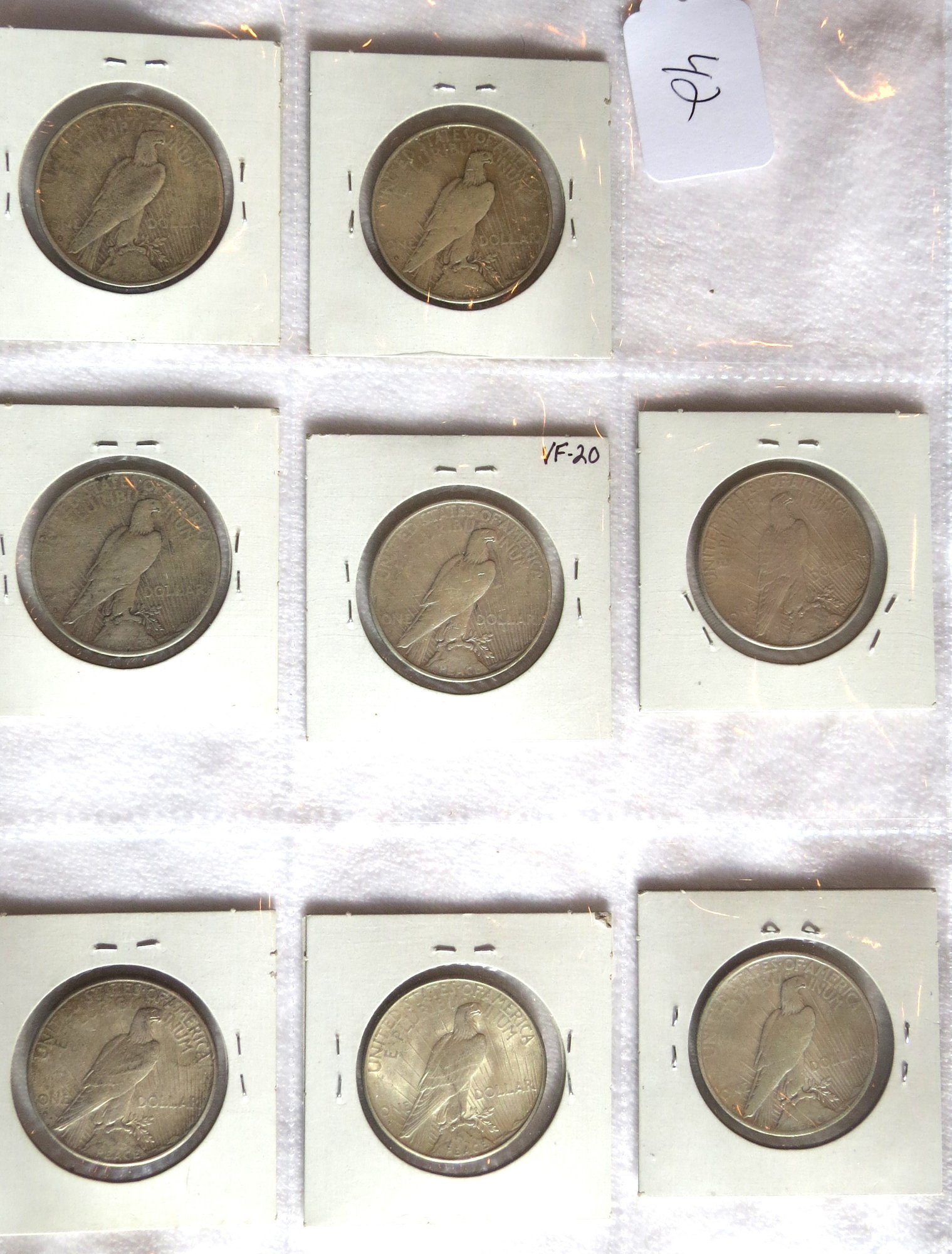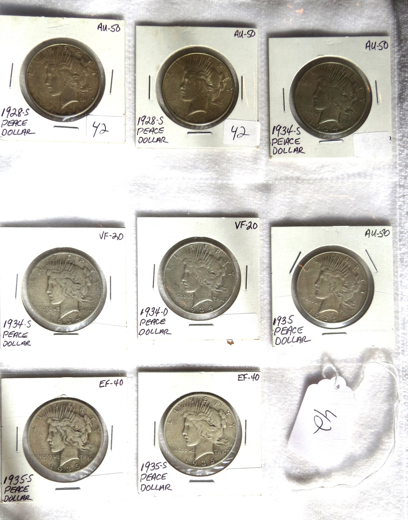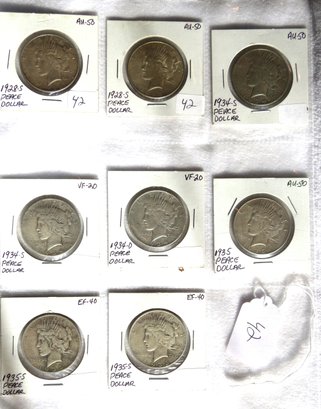 Eight Peace Dollars, 1928-S, 1928-S, 1934-S, 1934-S, 1934, 1935, 1935-S, 1935-S