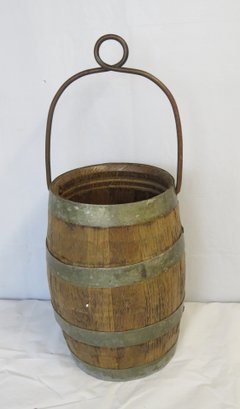 English oak fire bucket, 17” h. to top of handle, 11” h. bucket, 8” diameter