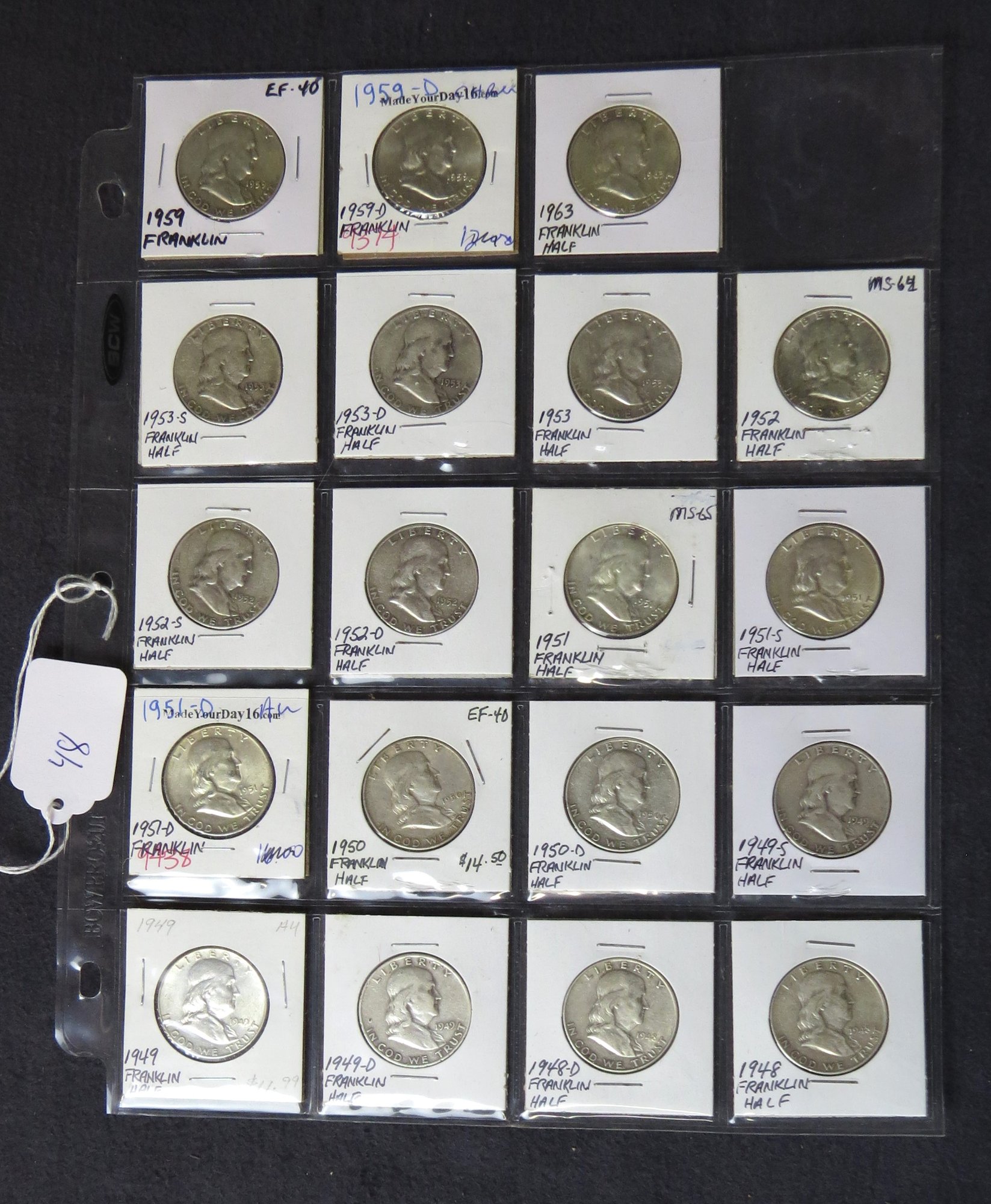 1959, 1959-D, 1963. 1953-S, 1953-D, 1953, 1952, 1952-S, 1952-O, 1951, 1951-S, 1957-D, 1950, 1950-D, 1949-S, 1949, 1`949-D, 1948-D, 1948