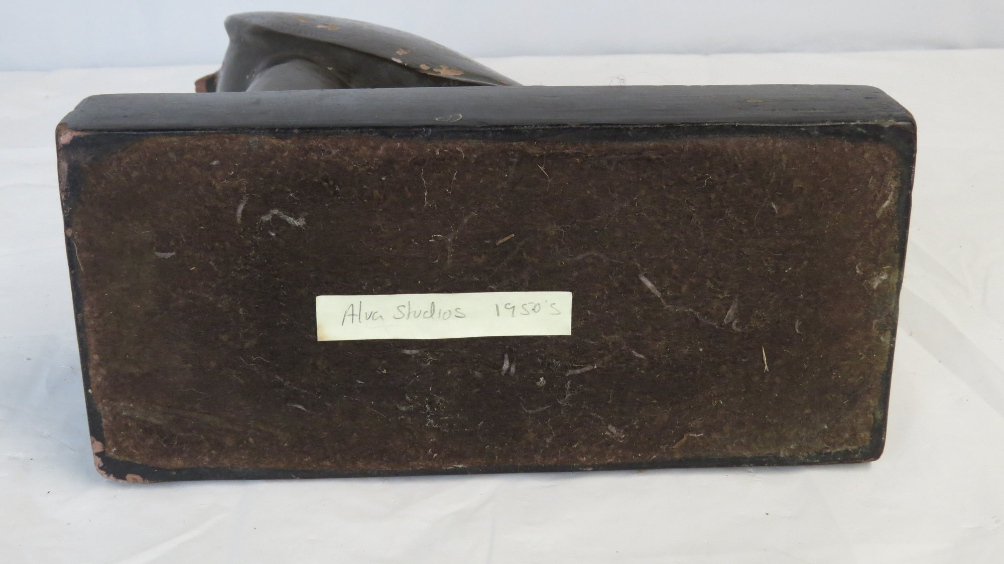Falco sculpture on base with hand written tag, “Alva Studio’s” 1950’s, 10” x 4 ½” x 12” h.