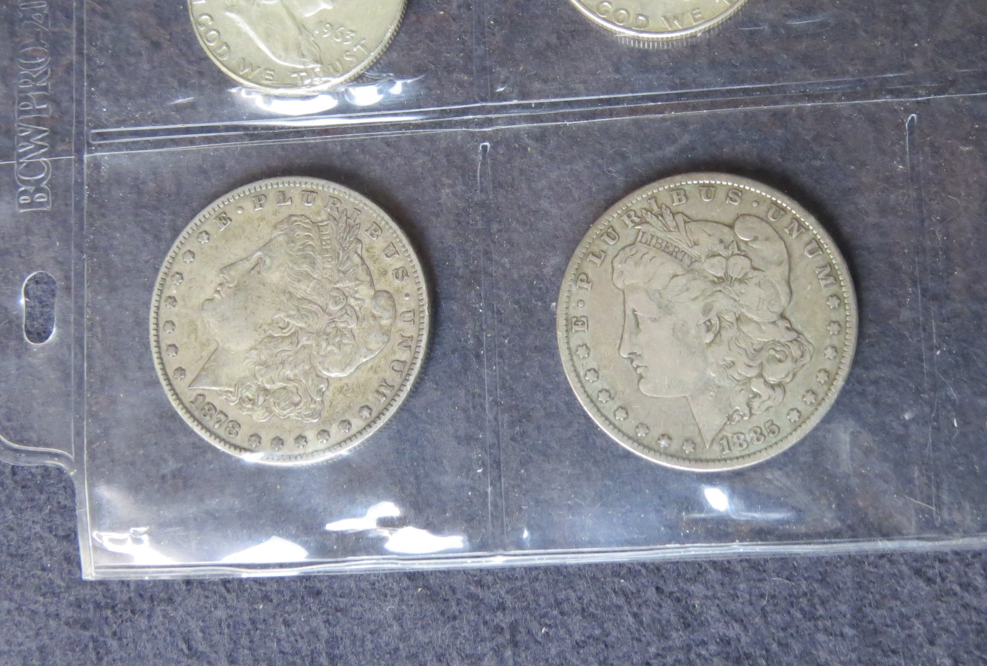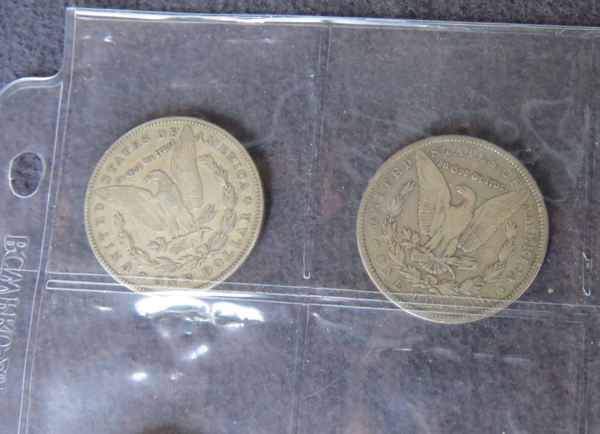 two Morgan silver dollars, 1878, 1885