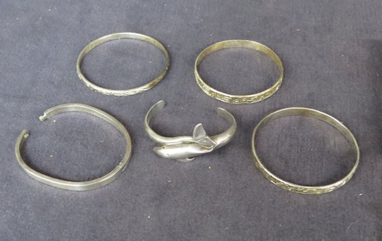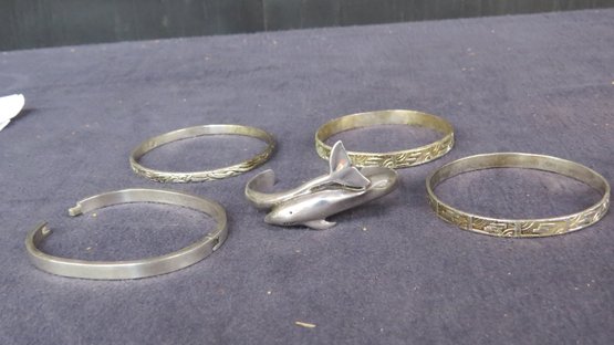 Lot 5 sterling bracelets, one figural dolphin motif, total weight 71.70 dwt