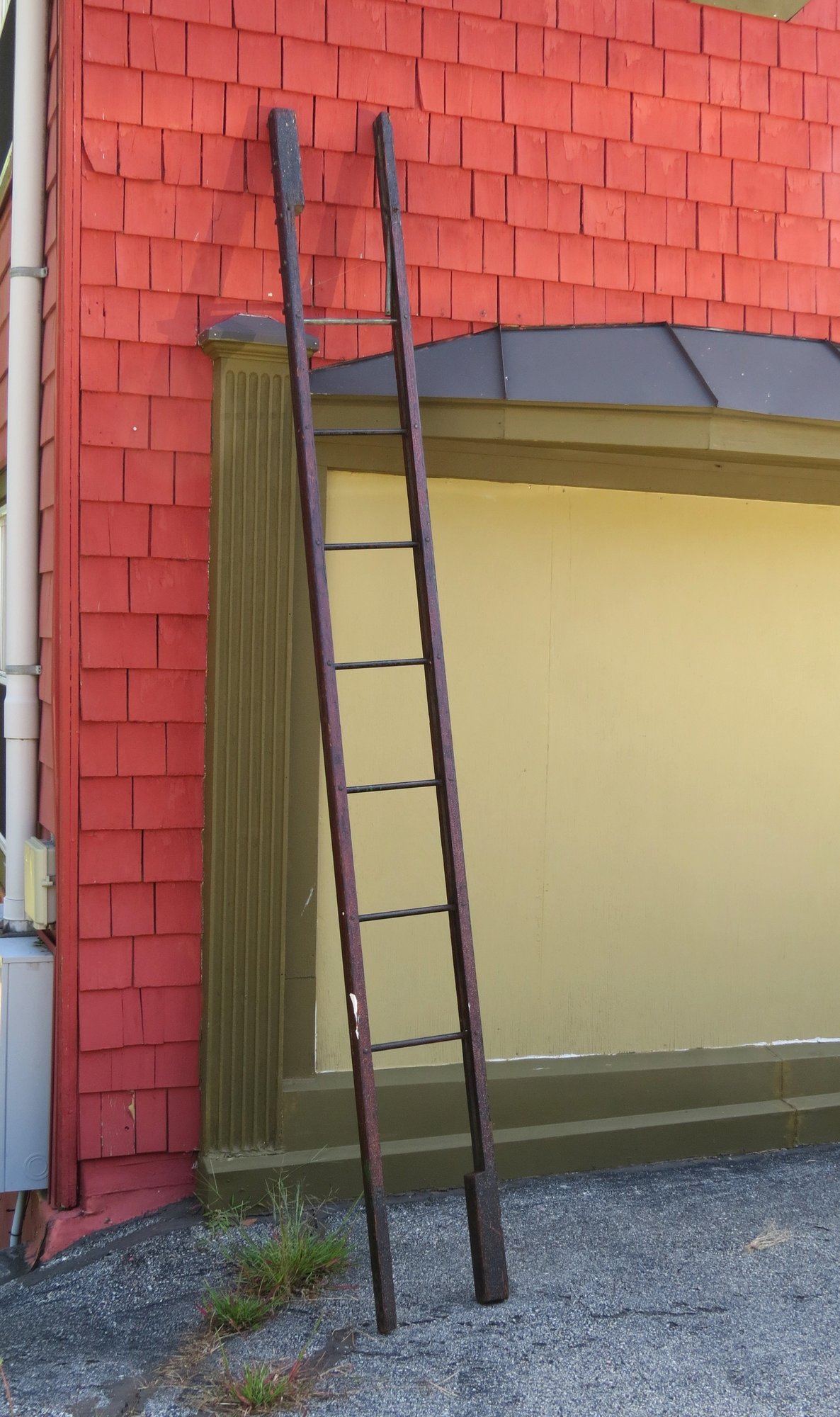 Notes: Folding ladder with metal runs two of which are unattached on one end, 11’ h.