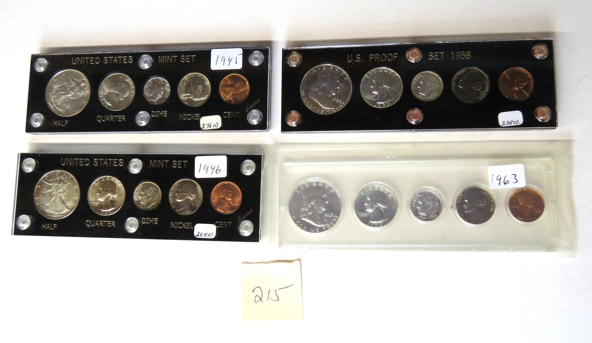 Four United States Mint Sets 1945, 1946, 1958 And 1963