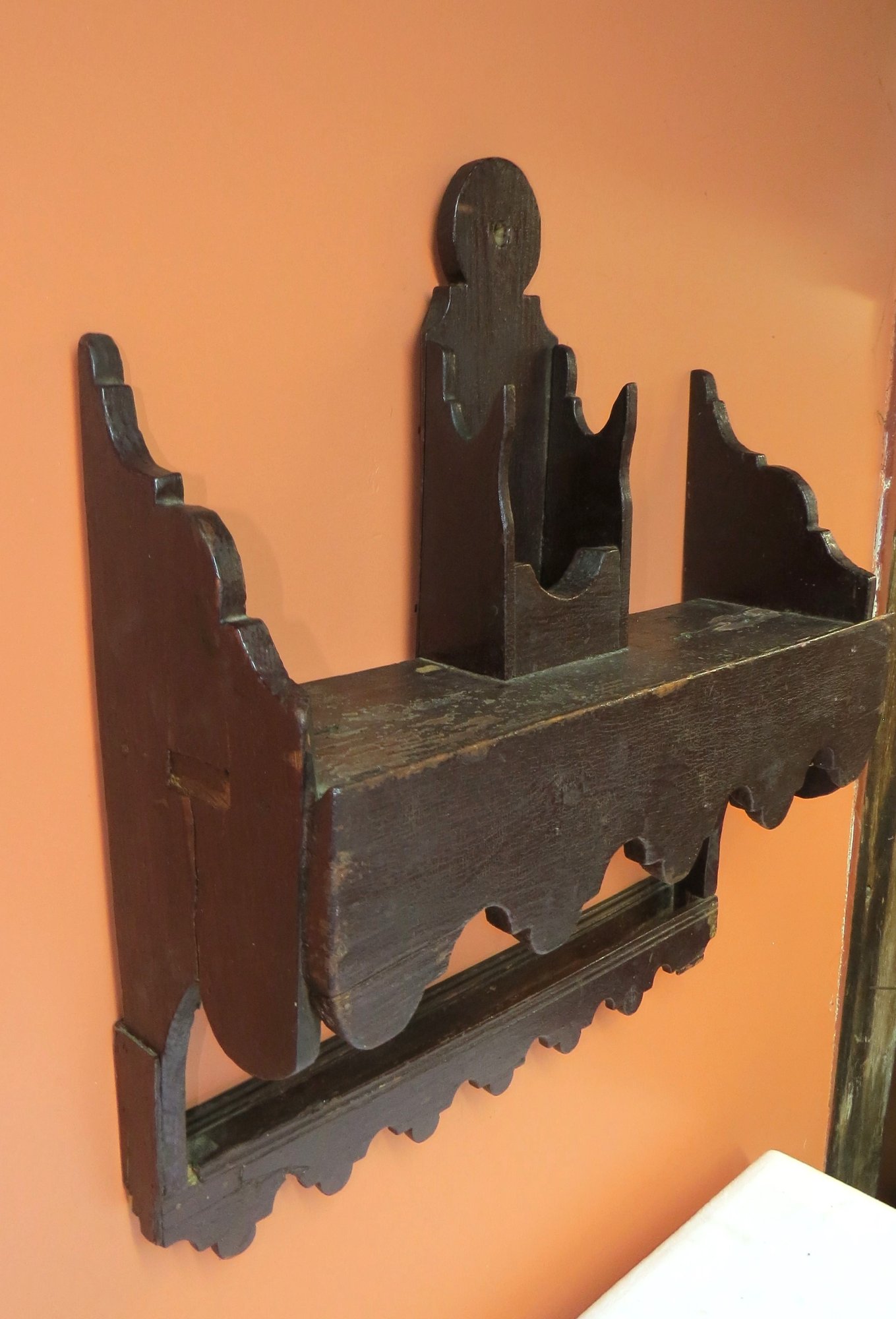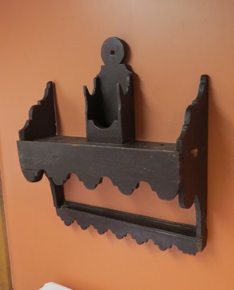 Hanging wall spoon rack and pipe box, 22” w. x 25” h. x 7” d. has bottom strip of wood replaced.