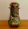 Large Majolica Style Vase With Dragon Decoration 16 Inches Tall