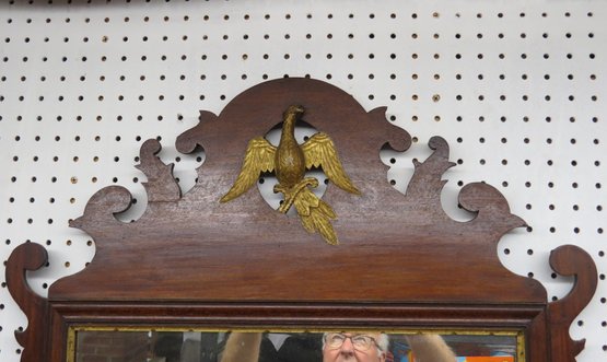 Large period Chippendale mirror with Phoenix bird crest, 48” h. x 26” w.