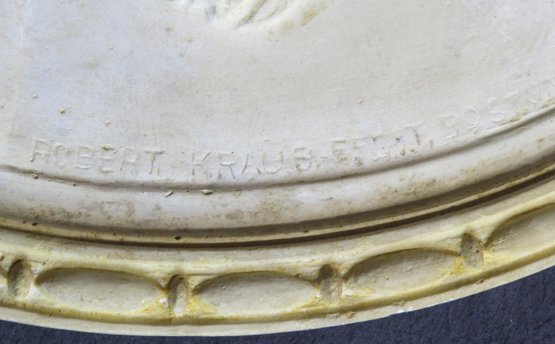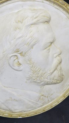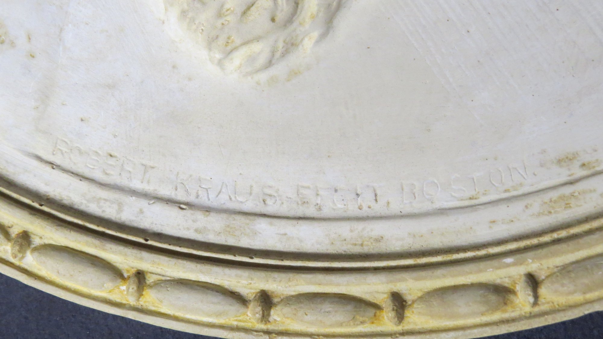 Plaster relief portrait bust (possible Ulysses Grant) by Robert Kraus Boston, 16” diameter, the artist who did the “Boston Massacre on Boston Common. Two minor border chips.