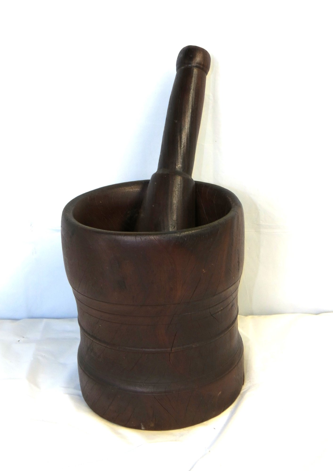 Lignum Vitae mortar and pestle standing 7” h. good condition