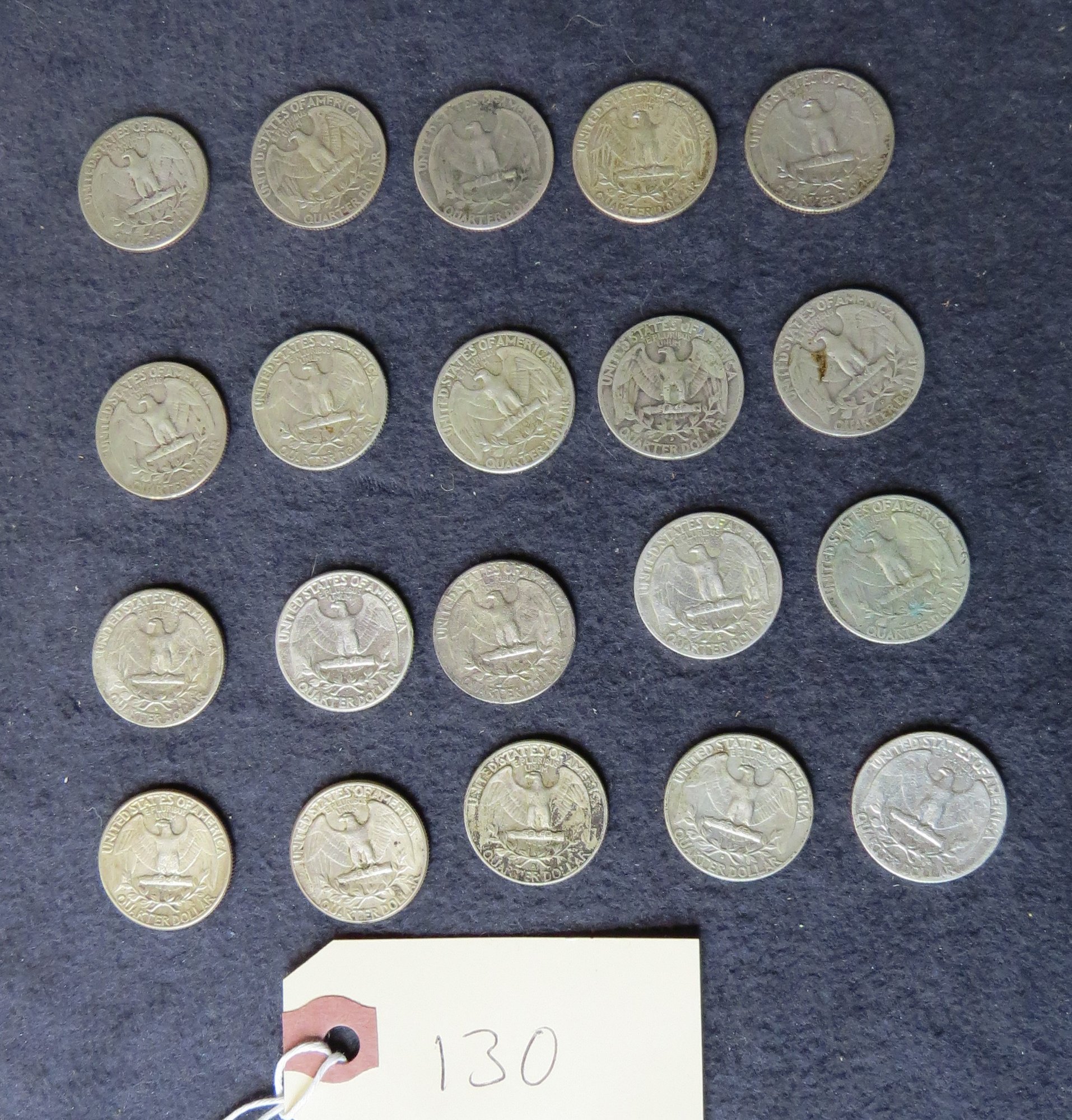 Lot 20 Washington Silver Quarters, Mixed Dates
