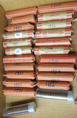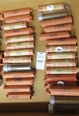12 rolls 1951, 11 rolls 1952, 13 rolls 1953, 10 rolls 1955, some over some short, at least 1750 coins